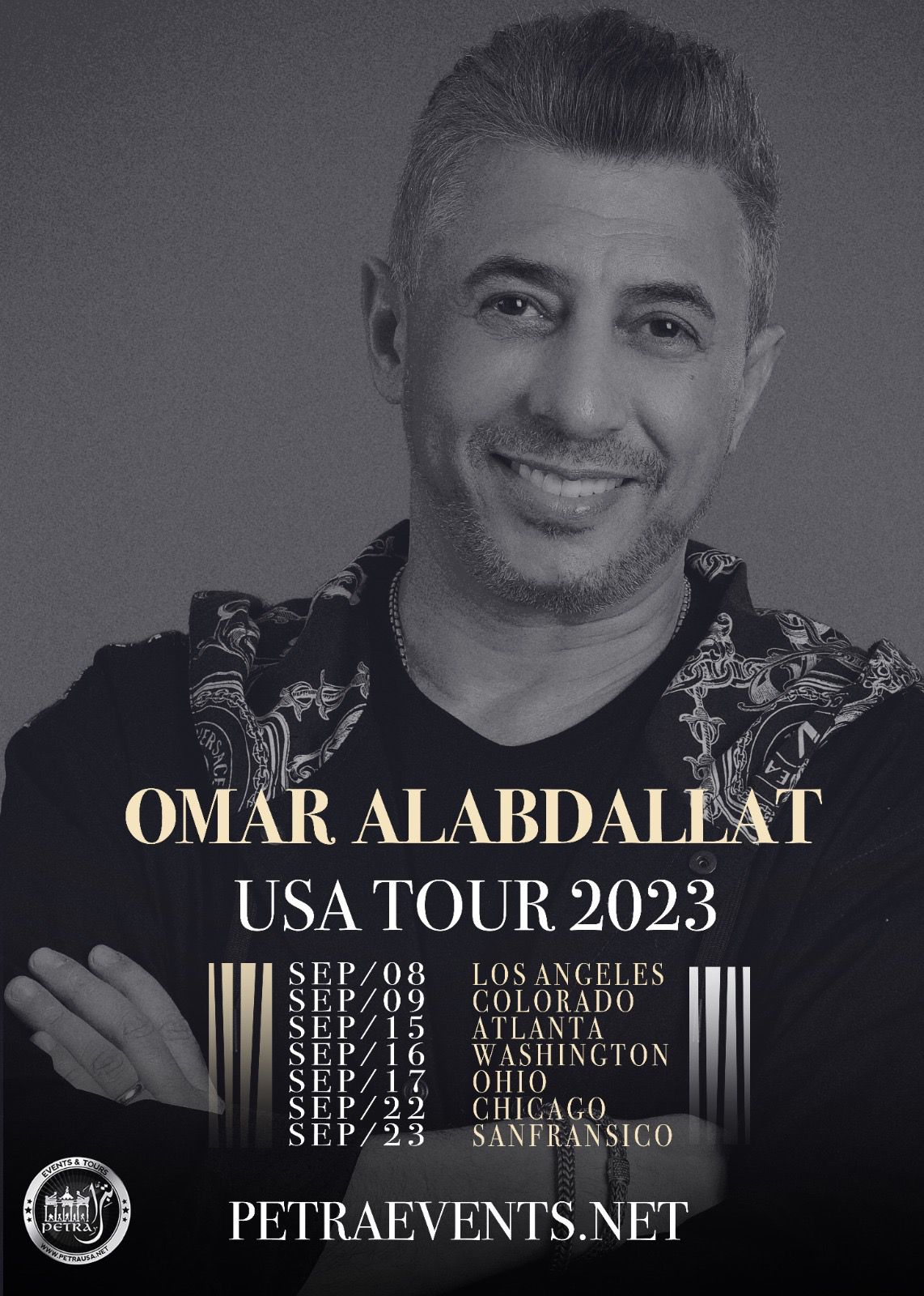 يستعد الفنان عمر العبداللات، لإحياء مجموعة من أكبر وأضخم الحفلات الغنائية في الولايات المتحدة الأمريكية، خلال شهر سبتمبر المقبل، ضمن جولة فنية جماهيرية تشمل سبعة ولايات أمريكية، من تنظيم "PETRA EVENTS".