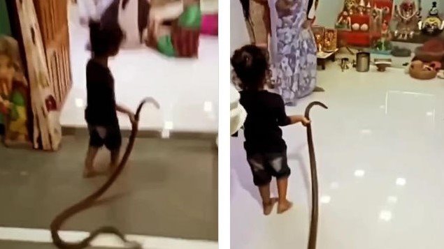 واوضح الفيديو أنه بينما كان لاعب الكركيت إيسورو أودانا يتقدم ويتحرك للخلف ليأخذ موقعه، قفز خائفا من رؤية الثعبان ينزلق على الأرض.