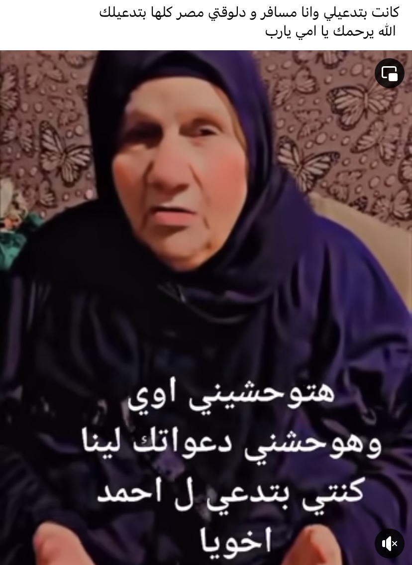 وعلق شيبه على الفيديو :" كانت بتدعيلي وانا مسافر و دلوقتي مصر كلها بتدعيلك الله يرحمك يا امي يارب".