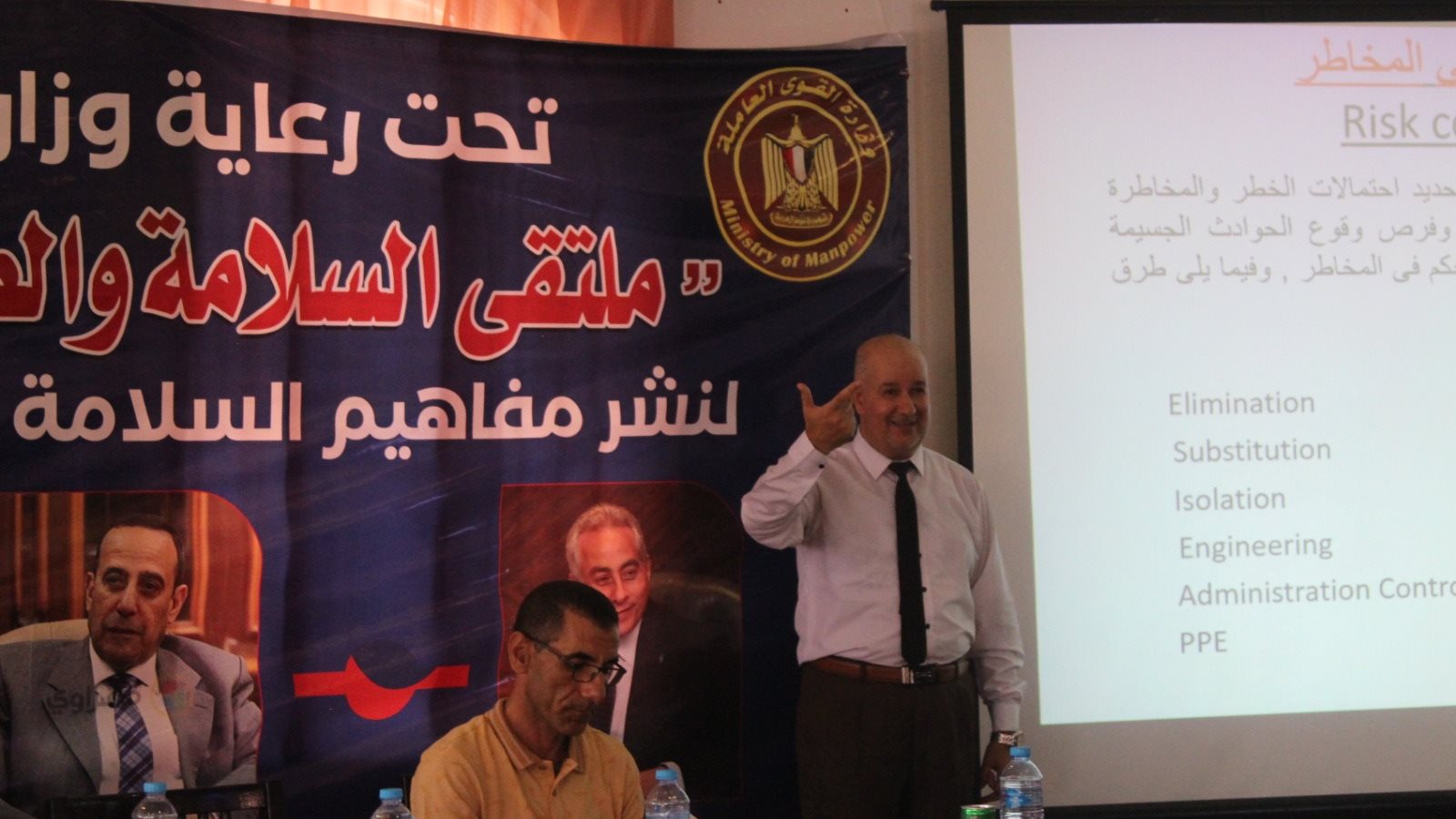 وأوضح أن المديرية أطلقت علي مدار اليومين الماضيين فعاليات ملتقى السلامة والصحة المهنية بقرية سما السياحية،بمدينة العريش، لنشر مفاهيم وثقافة وتعليمات السلامة والصحة المهنية بين عمال المحافظة،وذلك بمشاركة 63 من مسؤولي السلامة يمثلون 25 منشأة صناعية وسياحية بالمحافظة،وذلك برعاية وزير العمل حسن شحاتة ،واللواء الدكتور محمد عبدالفضيل شوشة محافظ شمال سيناء ،وتحت إشراف الإدارة المركزية للسلامة والصحة المهنية بالوزارة.