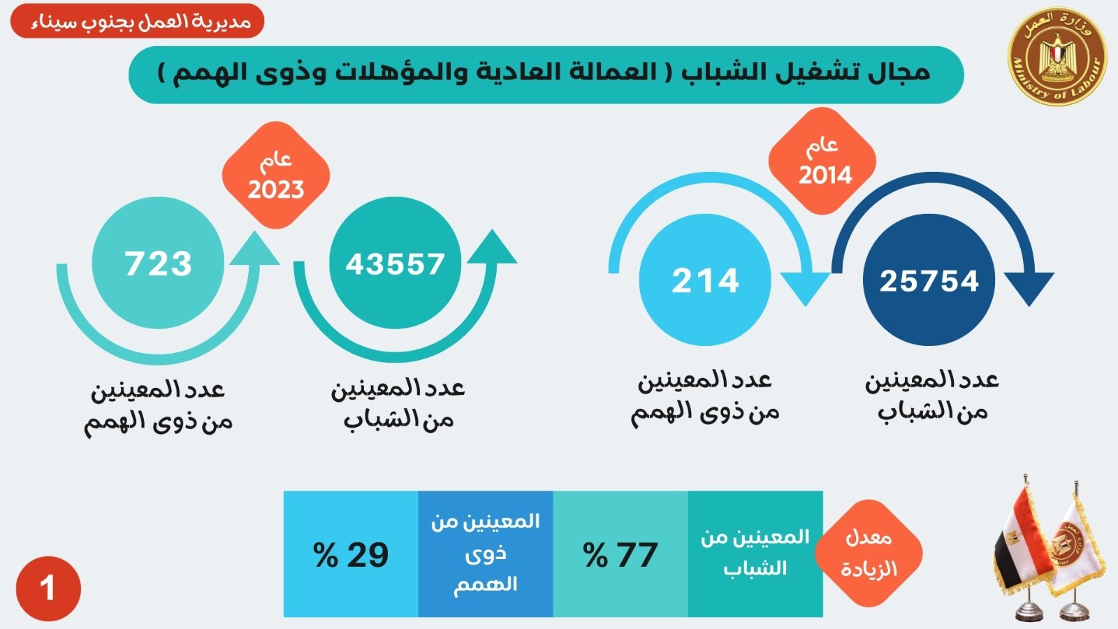 وأوضحت الأرقام أنه تم تشغيل 214 شابا من ذوي الهمم حتى عام 2014، وفي عام 2023 سجلت المديرية تشغيل 723 شابا داخل منشآت القطاع الخاص، وهذا يعني أنه من عام 2014 وحتى الآن تم تعيين 509 من ذوي الهمم.