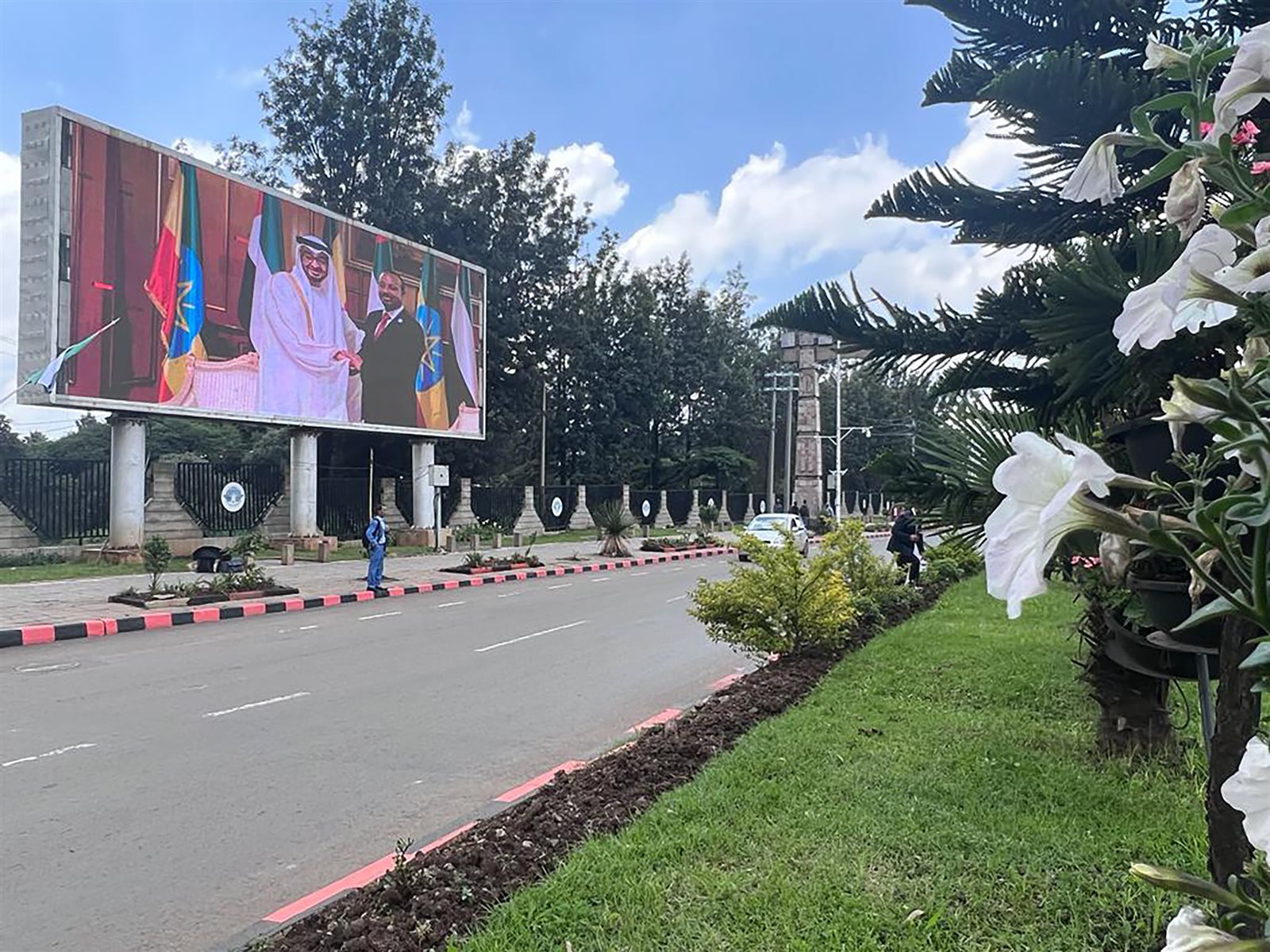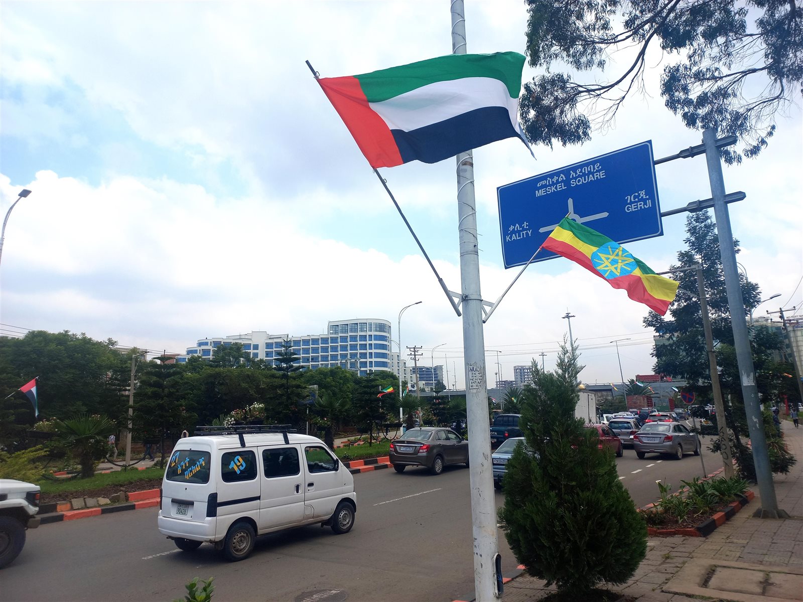 وأشارت الوكالة الي ان شوراع أديس أبابا تزينت بأعلام دولة الإمارات وصور رئيس الإمارات و أبي أحمد رئيس وزراء جمهورية إثيوبيا الفيدرالية الديمقراطية في مشهد استثنائي.