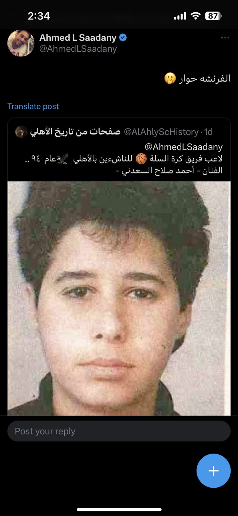 وكان السعدني من ناشئي الأهلي، لكرة السلة عام ١٩٩٤م، ومزح مع جمهوره بتعليق على الصورة: “الفرنشه حوار”.