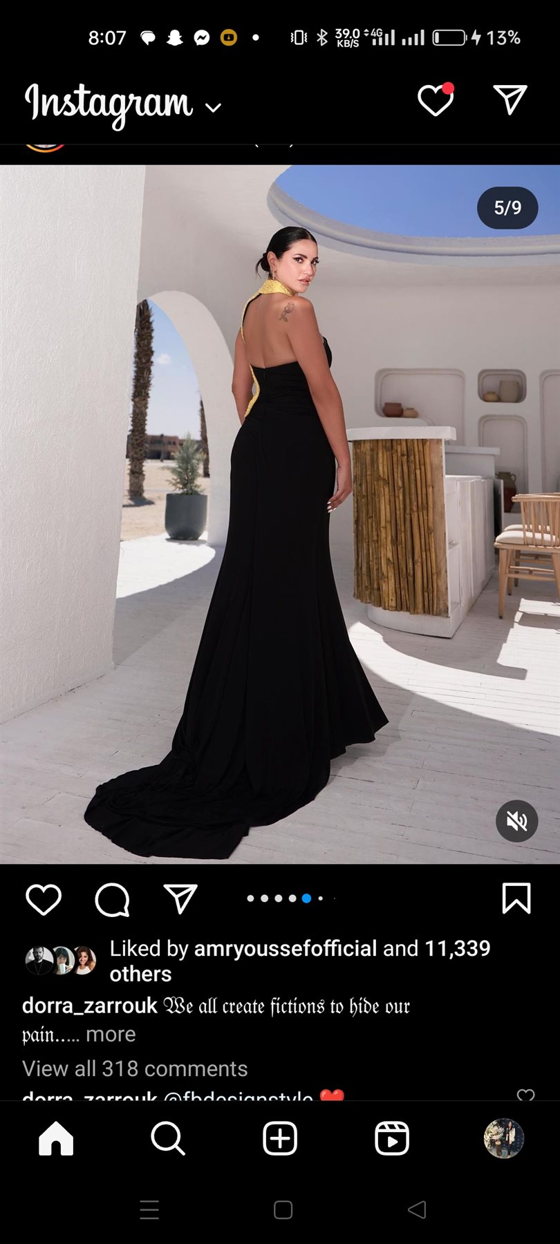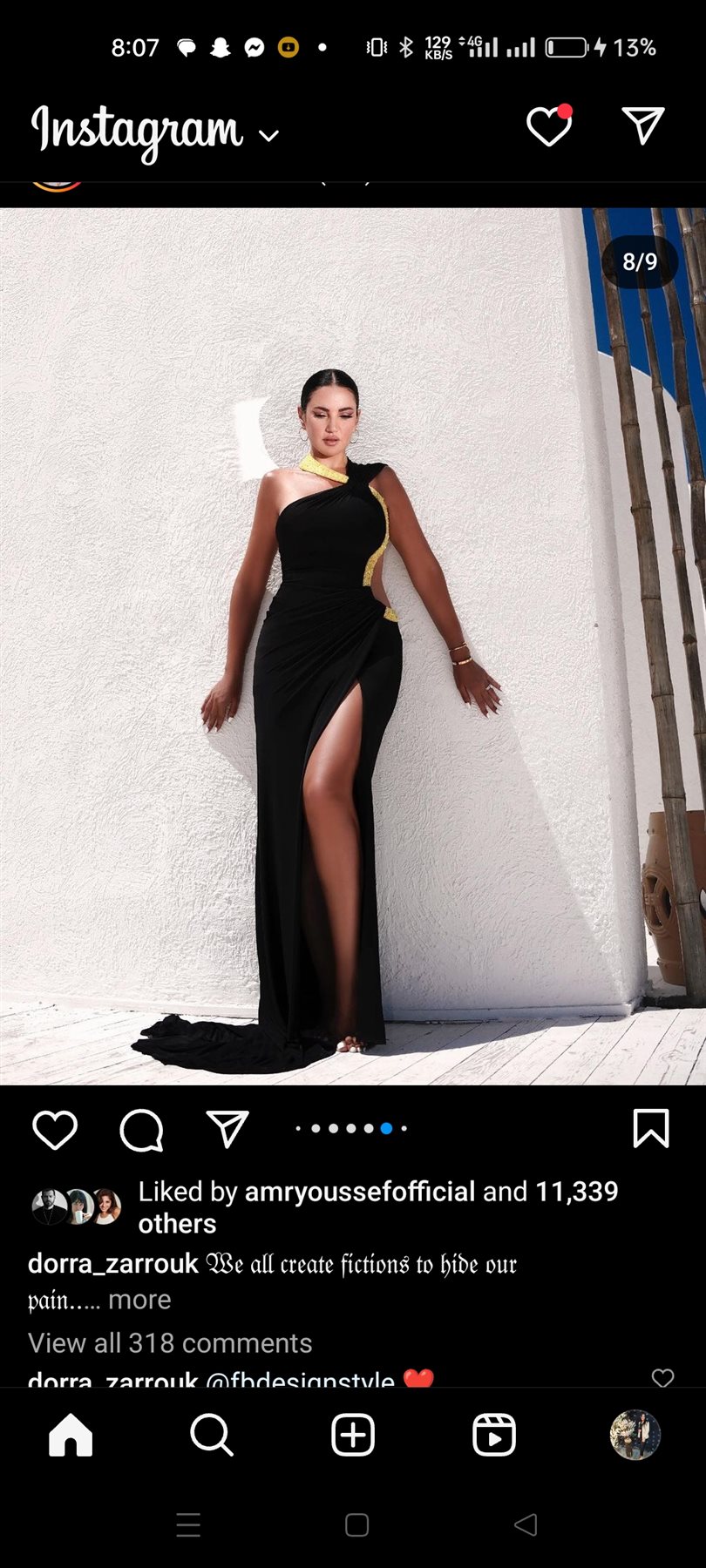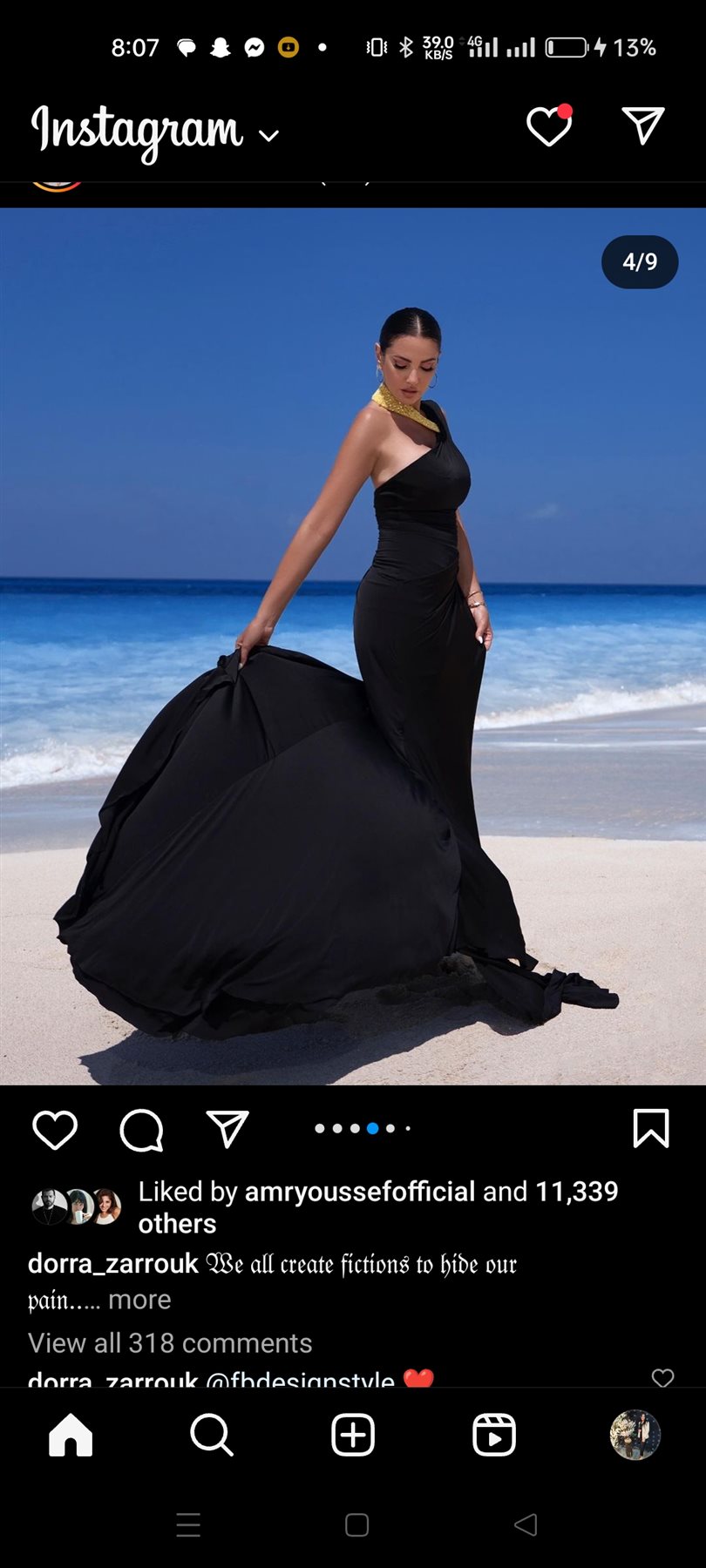 وظهرت درة في الصور بإطلالة متميزة مرتدية فستان أسود طويل بدون حذاء من علي البحر.