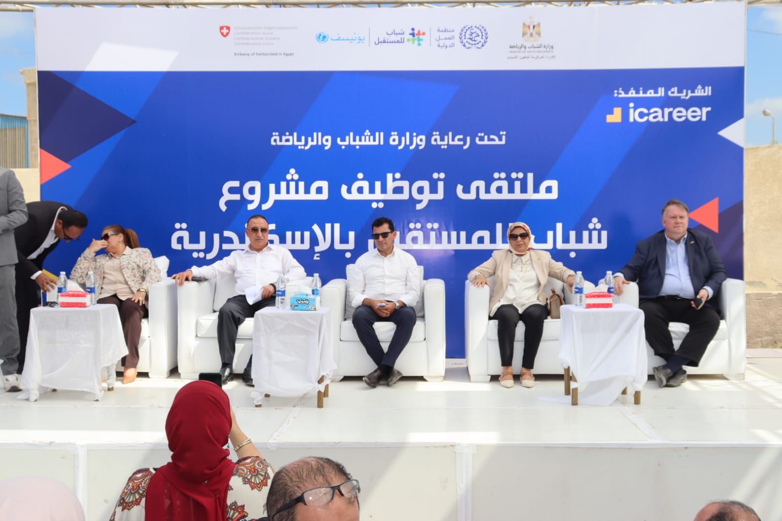 وافتتح الدكتور أشرف صبحي وزير الشباب والرياضة ملتقى توظيف الشباب "مشروع شباب للمستقبل" بمحافظة الإسكندرية، اليوم الخميس، بمركز شباب أبو قير، بالتعاون مع شركات القطاع الخاص، على هامش فعاليات صيف شبابنا، في حضور ايريك أوشلان مدير مكتب منظمه العمل الدولية والدكتورة منال جمال وكيل الوزارة رئيس الإدارة المركزية لتمكين الشباب وعدد من أعضاء مجلسي النواب والشيوخ وقيادات مديريه الشباب والرياضة بالإسكندرية.