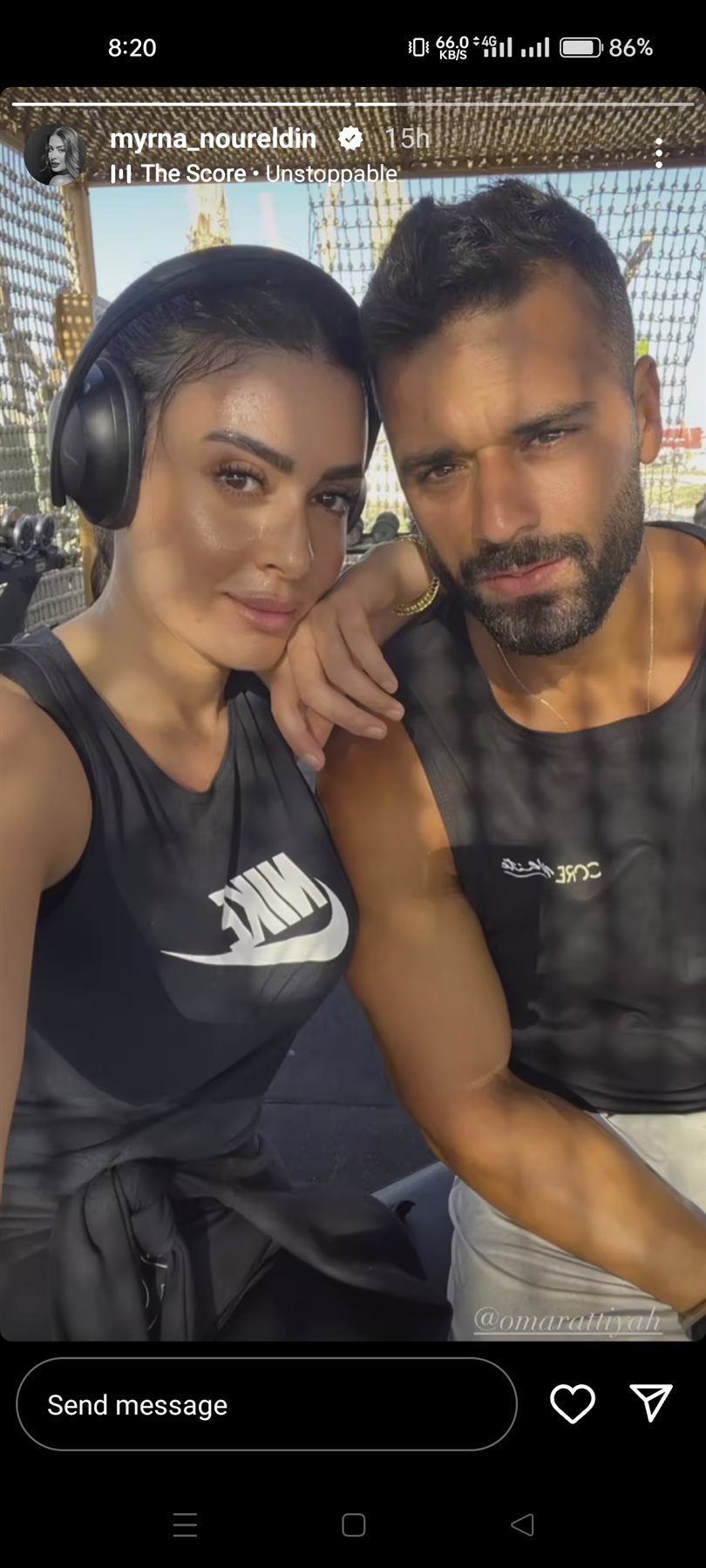 وظهرت ميرنا في الصور بإطلالة رياضية متميزة، أثناء مرانها اليومي من داخل الجيم رفقة زوجها.