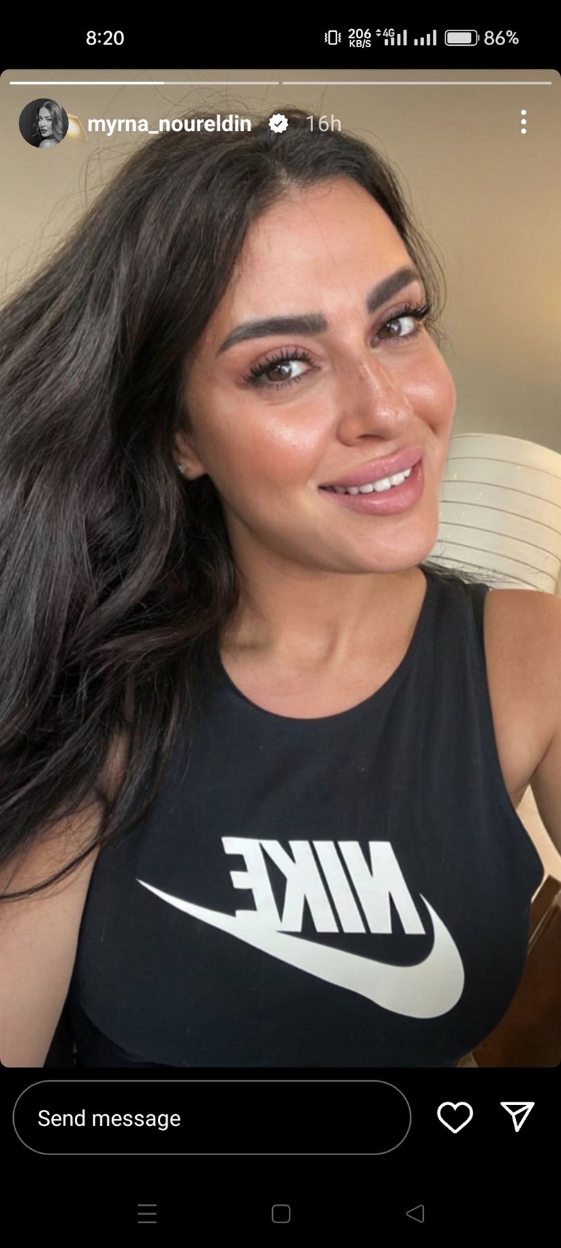 شاركت الفنانة ميرنا نور الدين متابعيها صورة جديدة لها عبر صفحتها على موقع التواصل الاجتماعي لتبادل الصور والفيديوهات القصيرة إنستجرام خلال خاصية الاستوري.