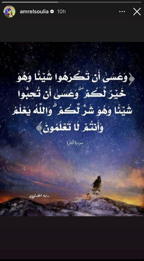 شارك عمرو السولية، لاعب النادي الأهلي، منشورا تضمن آية قرآنية، عبر حسابه الشخصي على موقع التواصل الاجتماعي إنستجرام.