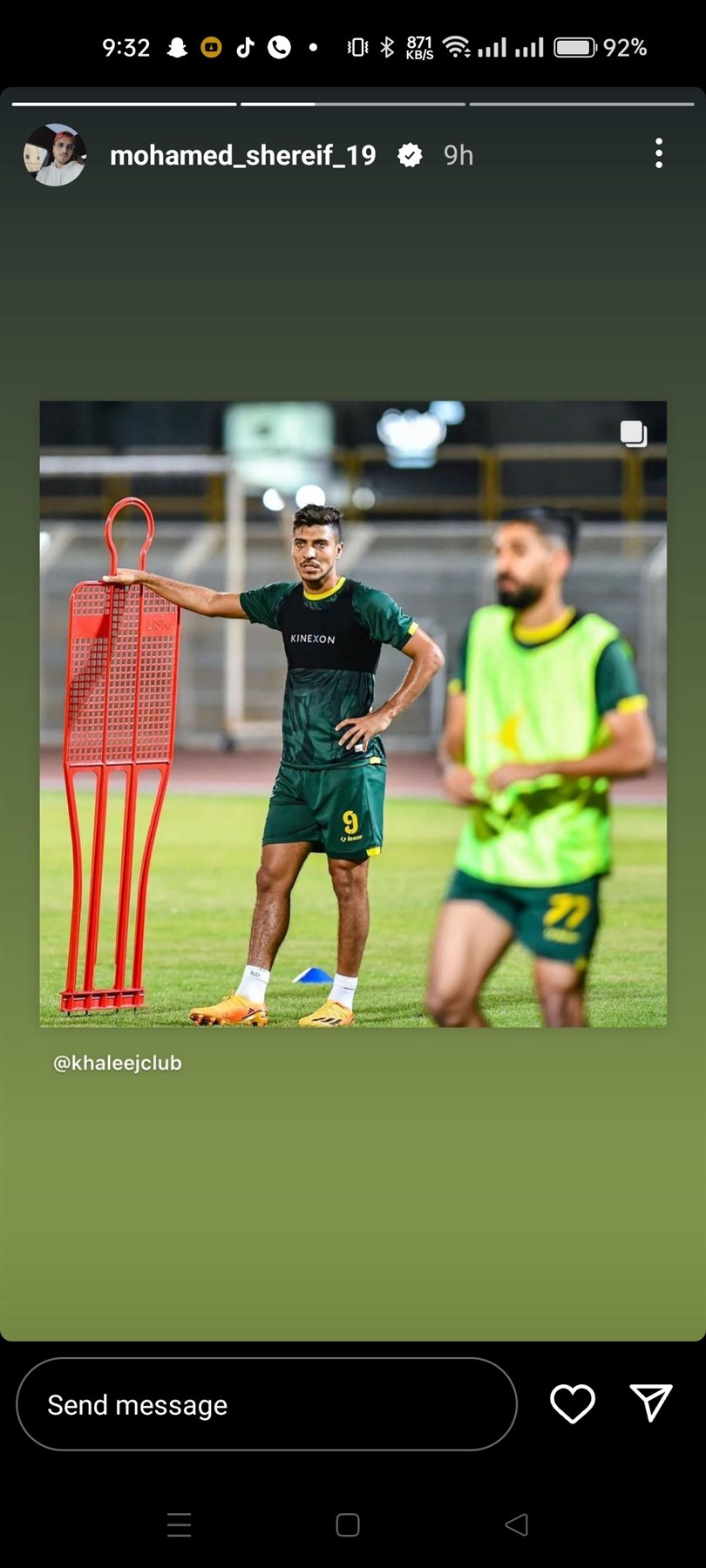 شارك اللاعب محمد شريف متابعيه صورة جديدة له عبر صفحته على موقع التواصل الاجتماعي لتبادل الصور والفيديوهات القصيرة إنستجرام خلال خاصية الاستوري.
