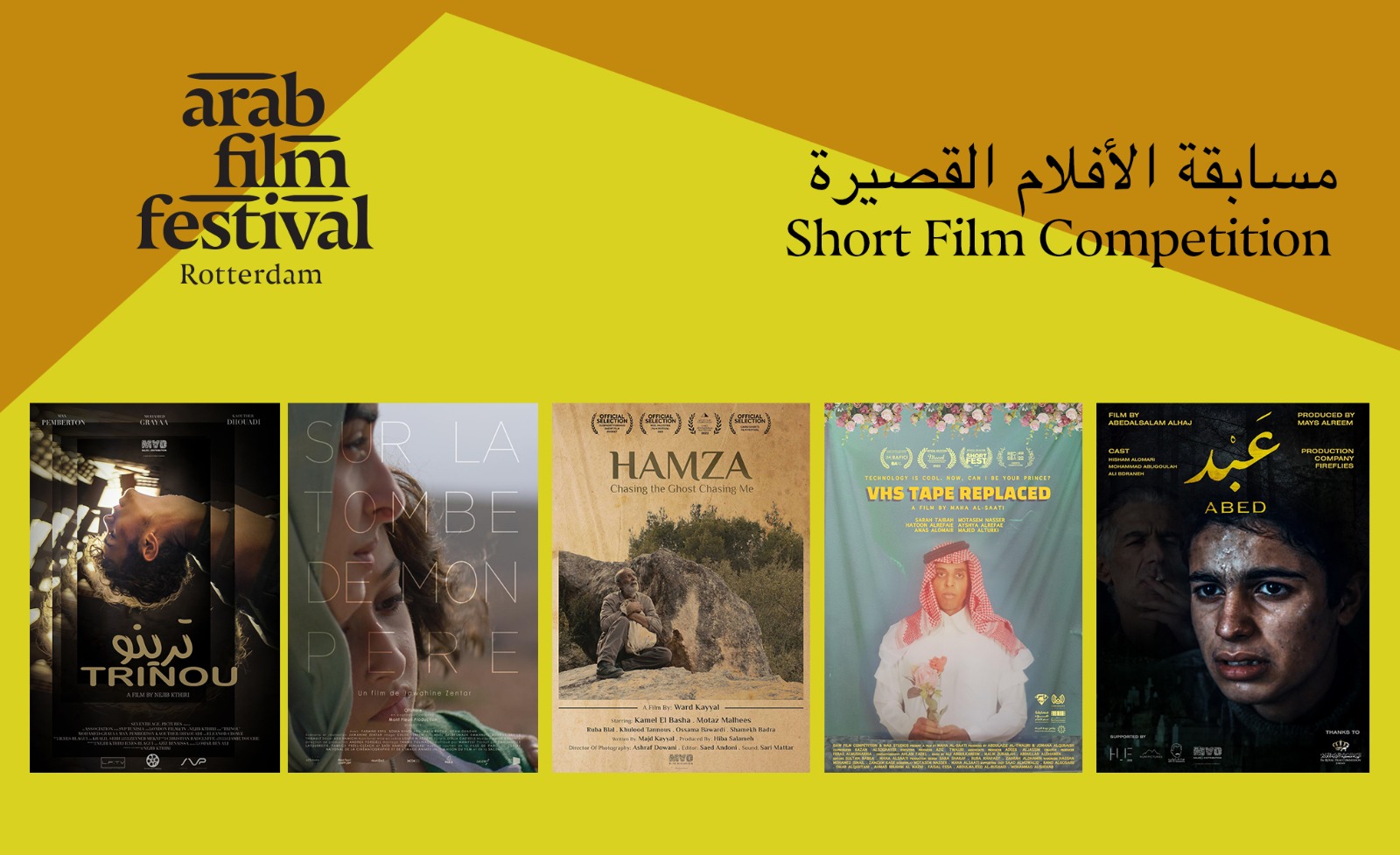 ويتنافس بمسابقة الأفلام القصيرة فيلم "حمزة أطارد شبحًا يطاردني" إخراج ورد كيال (فلسطين)، "عبد" إخراج عبد السلام الحاج (الأردن)، "شريط فيديو تبدل" إخراج مها الساعاتي (السعودية)، "على قبر أبي" إخراج جواهين زنتار (المغرب ,فرنسا)، "ترينو" إخراج نجيب كثيري (تونس,إنجلترا).