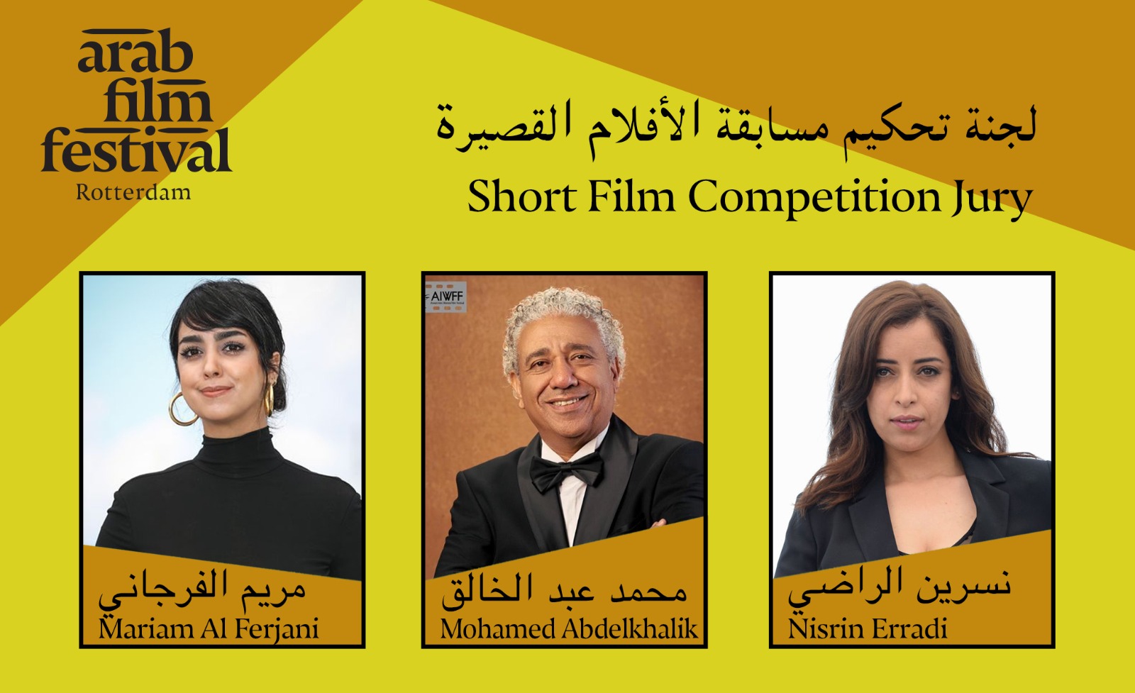 وتتكون لجنة تحكيم الأفلام الطويلة من المخرج الفلسطيني محمد قبلاوي، والفنانة المصرية داليا البحيري، والمنتج السعودي صالح فوزان، كما تضم لجنة تحكيم الأفلام الوثائقية المنتج السينمائي المصري صفي الدين محمود، والمخرج المغربي سعيد ازر، والمخرجة الهولندية دوفي رييس، وتشكلت لجنة تحكيم الأفلام القصيرة من الفنانة المغربية نسرين الراضي، والسيناريست المصري محمد عبد الخالق، والفنانة التونسية مريم الفرجاني.