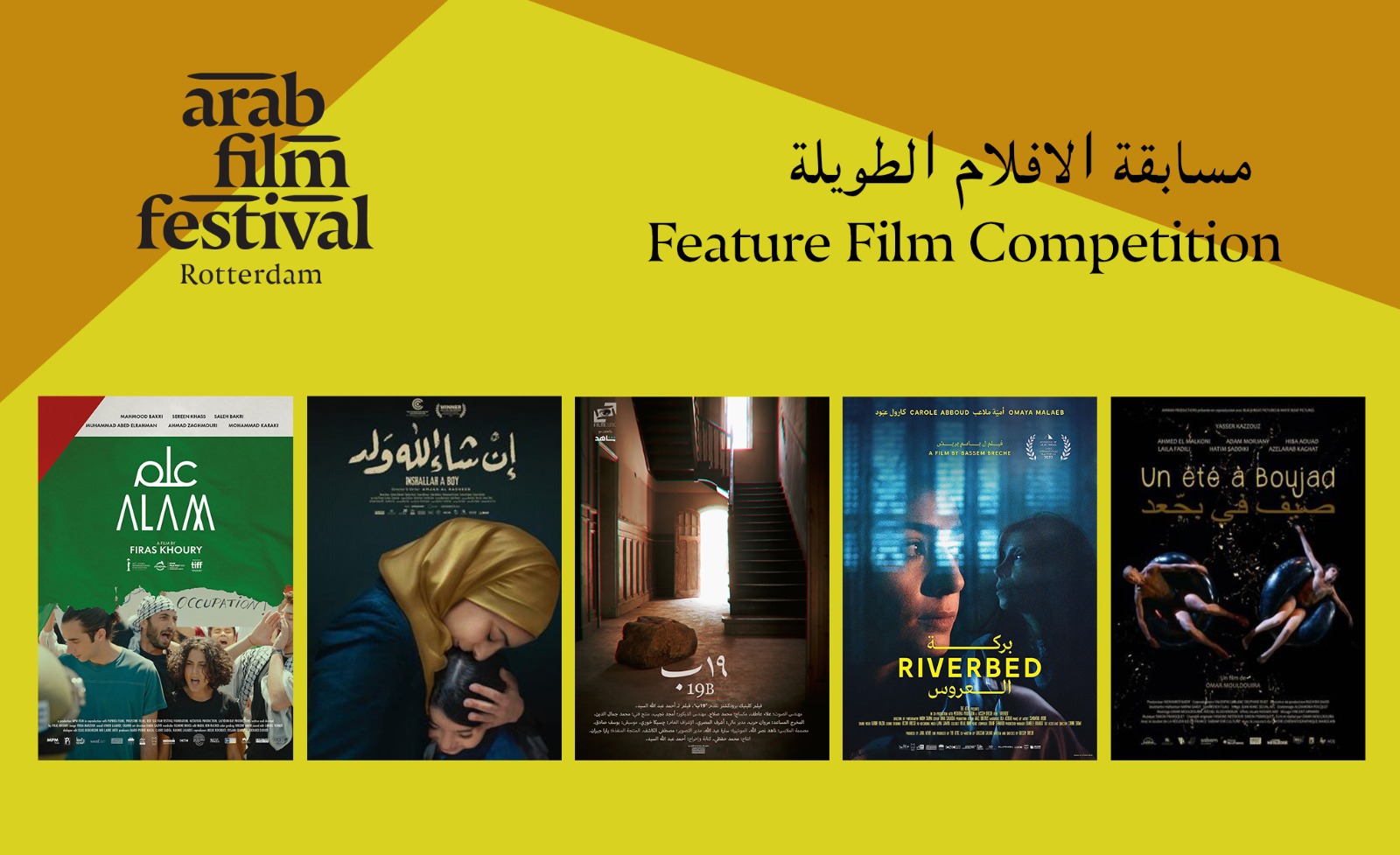 ويشارك بمسابقة الأفلام الطويلة فيلم "١٩ ب" إخراج أحمد عبد الله السيد (مصر)، "بركة العروس" إخراج باسم بريش (لبنان، قطر)، "علم" إخراج فراس خوري (فلسطين، فرنسا، تونس، السعودية، قطر)، "صيف في بجعد" إخراج عمر مول الدويرة (المغرب، فرنسا، بلجيكا)، "إن شاء الله ولد" إخراج أمجد الرشيد (الأردن ).