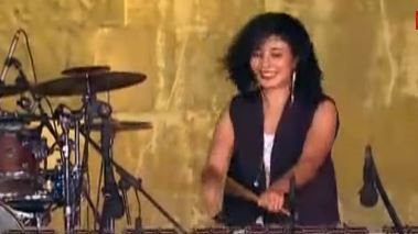 أشعلت عازفة الماريمبا الفنانة نسمة عبد العزيز حفلها بمحكى القلعة بأغنية الكينج محمد منير يونس، وتجاوب معها الجماهير وقاموا بغنائها مع عزفها.