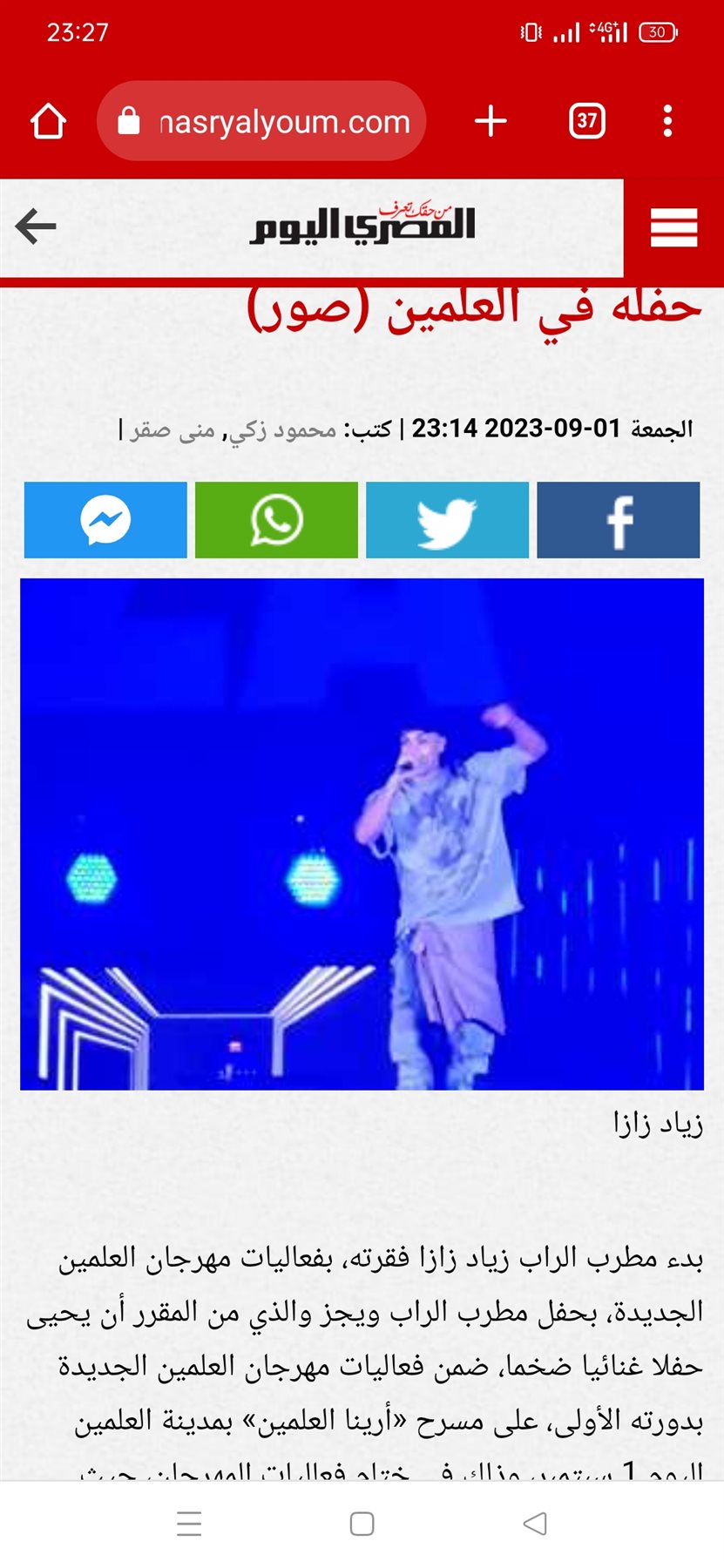 أشعل مطرب الراب زياد زازا فقرته بفعاليات مهرجان العلمين الجديدة، على مسرح «أرينا العلمين» وذلك في ختام فعاليات المهرجان، حيث ستتم إذاعة حفلات المهرجان عبر قناة «الحياة» على الهواء مباشرة للحفل الشبابي.
