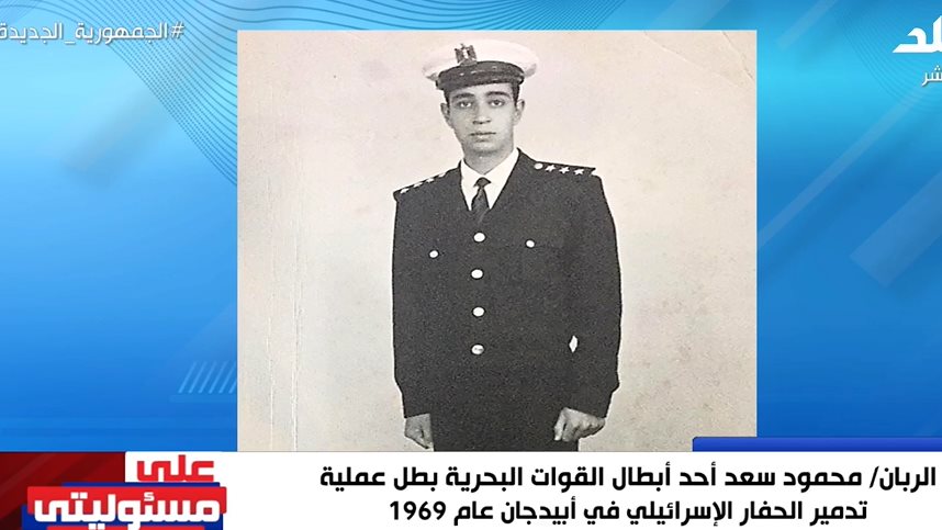 نعى الربان عمر عز الدين، قائد عمليات الإغارة على ميناء إيلات الإسرائيلي، الربان محمود سعد أحد أبطال عملية تدمير الحفار الإسرائيلي.