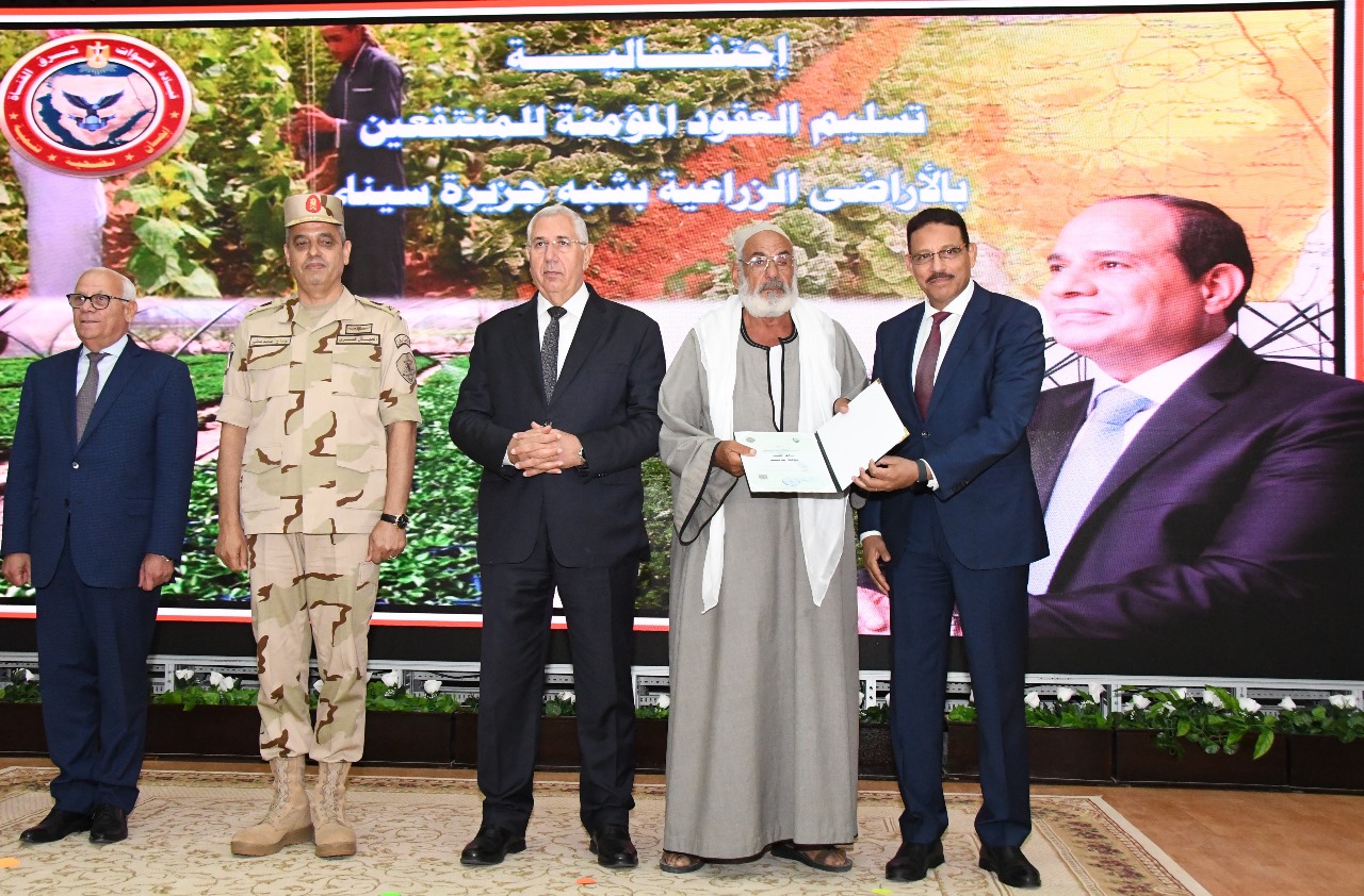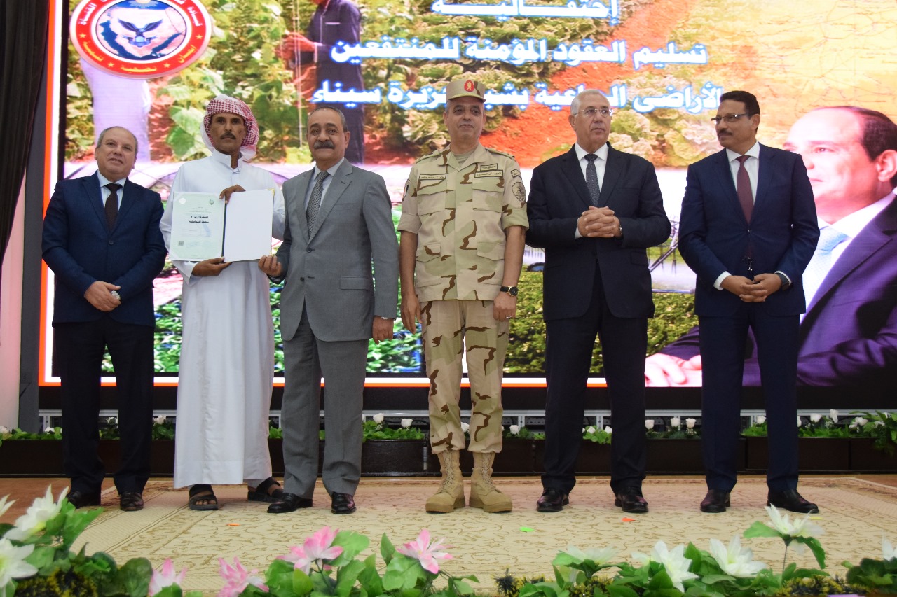 ولأن الدولة المصرية وقيادتها لا ينسون مواقف أهالي سيناء المُشرفة ووقوفهم مع الدولة أثناء فترة مكافحة الإرهاب، نظمت القوات المسلحة احتفالية تسليم العقود المؤمنة للمنتفعين بالأراضي الزراعية بسيناء وذلك في مقر القيادة الموحدة لشرق القناة.