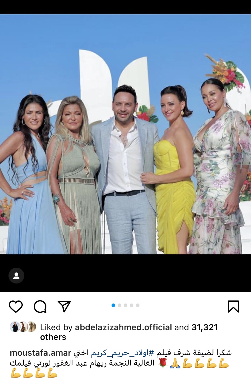 وكتب مصطفى قمر :" شكرا لضيفة شرف فيلم أولاد حريم كريم اختى الغالية النجمة ريها عبدالغفور نورتى فيلمك".
