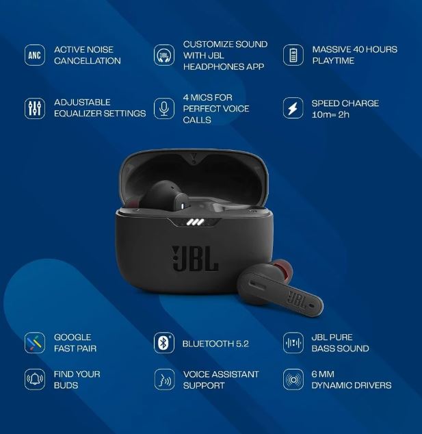 تحتوي السماعة الأذن اللاسلكية JBL Tune 235NC على محركات بحجم 6 ملميتر توفر جودة صوت واضحة، يتم توصيلها لاسلكيا عبر تقنية الـ Bluetooth الإصدار 5.2 للحصول على اتصال سلس.