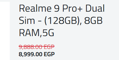 ويتوفر هاتف ريلمي + Realme 9 Pro في السوق المصري بسعر حوالي 9 آلاف جنيه، علما بأن السعر يختلف حسب النسخة وأيضا حسب المتجر.