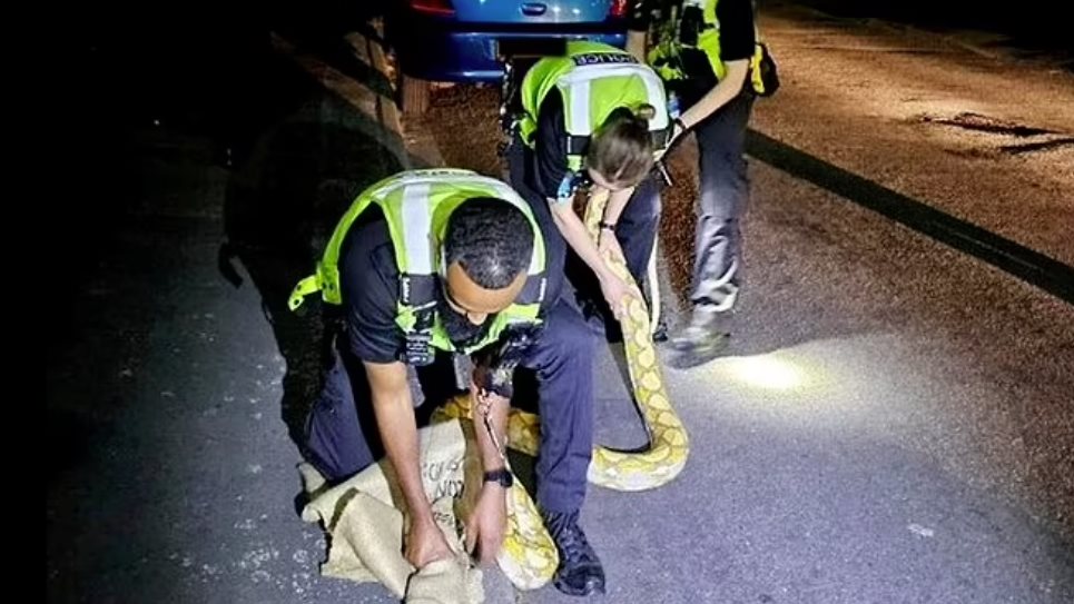 فوجىء رجل بريطاني بثعبان ضخم يبلغ طوله 11 قدما يحاول غرس أحد أنيابه في ذراعه الأيسر من الخلف والناب الآخر في قميصه بعد أن تسلل إلى غرفته عبر “الشباك”.