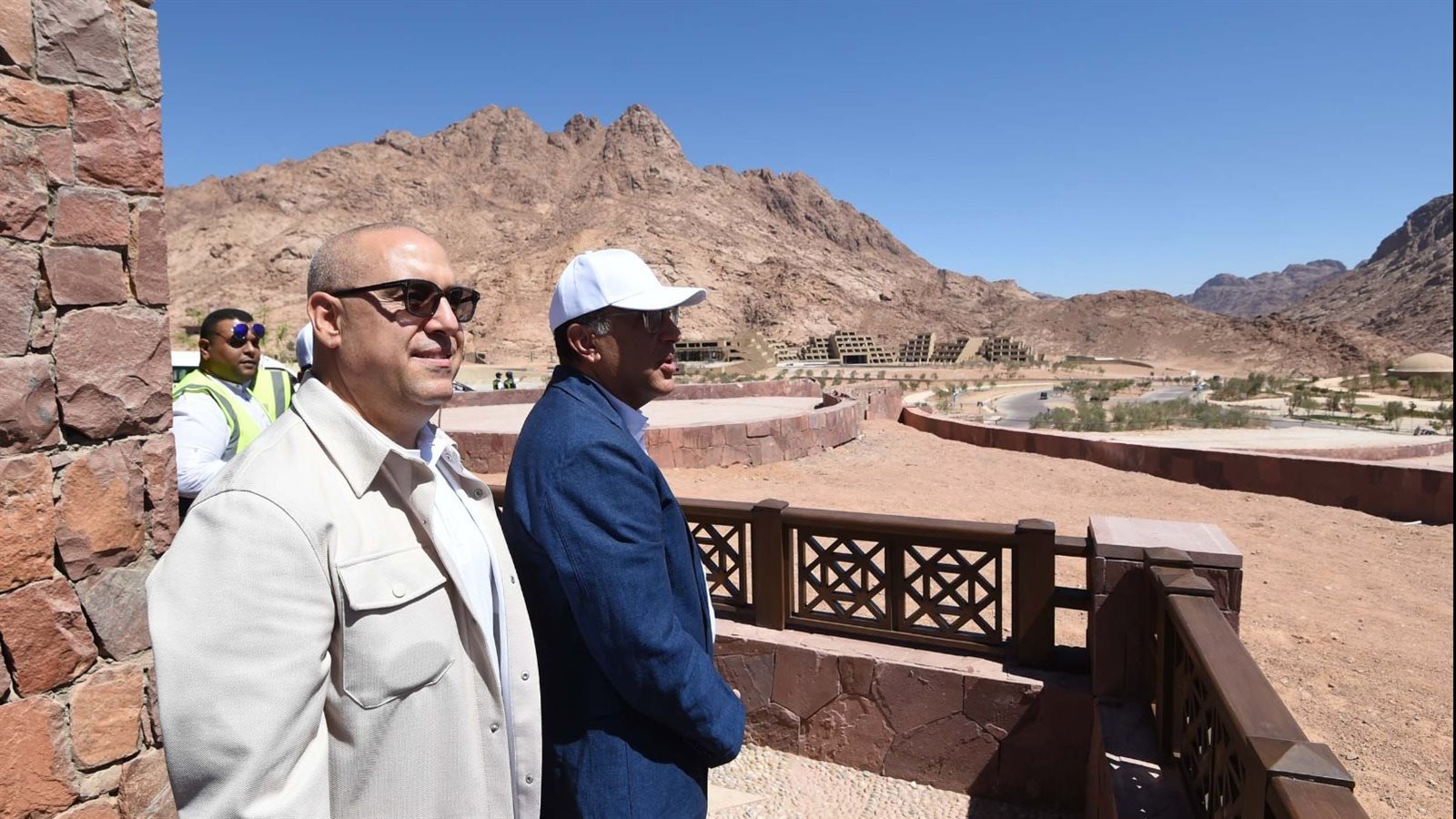 ويرافق رئيس الوزراء خلال الزيارة كلٌ من: الدكتور عاصم الجزار، وزير الإسكان والمرافق والمجتمعات العمرانية، والفريق كامل الوزير، وزير النقل، واللواء هشام آمنة، وزير التنمية المحلية، والفريق محمد عباس حلمي، وزير الطيران المدني، والدكتور هاني سويلم، وزير الموارد المائية والري، وأحمد عيسى، وزير السياحة والآثار، واللواء خالد فودة، محافظ جنوب سيناء، وحسام هيبة، الرئيس التنفيذي للهيئة العامة للاستثمار والمناطق الحرة.