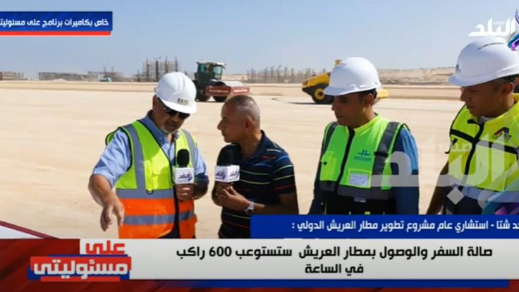 أجرى الإعلامي أحمد موسى، لقاءات مع مجموعة من مهندسي مشروع تطوير مطار العريش الدولي، للتعرف على تفاصيل المشروع والصعوبات التي واجهتهم أثناء تنفيذه.