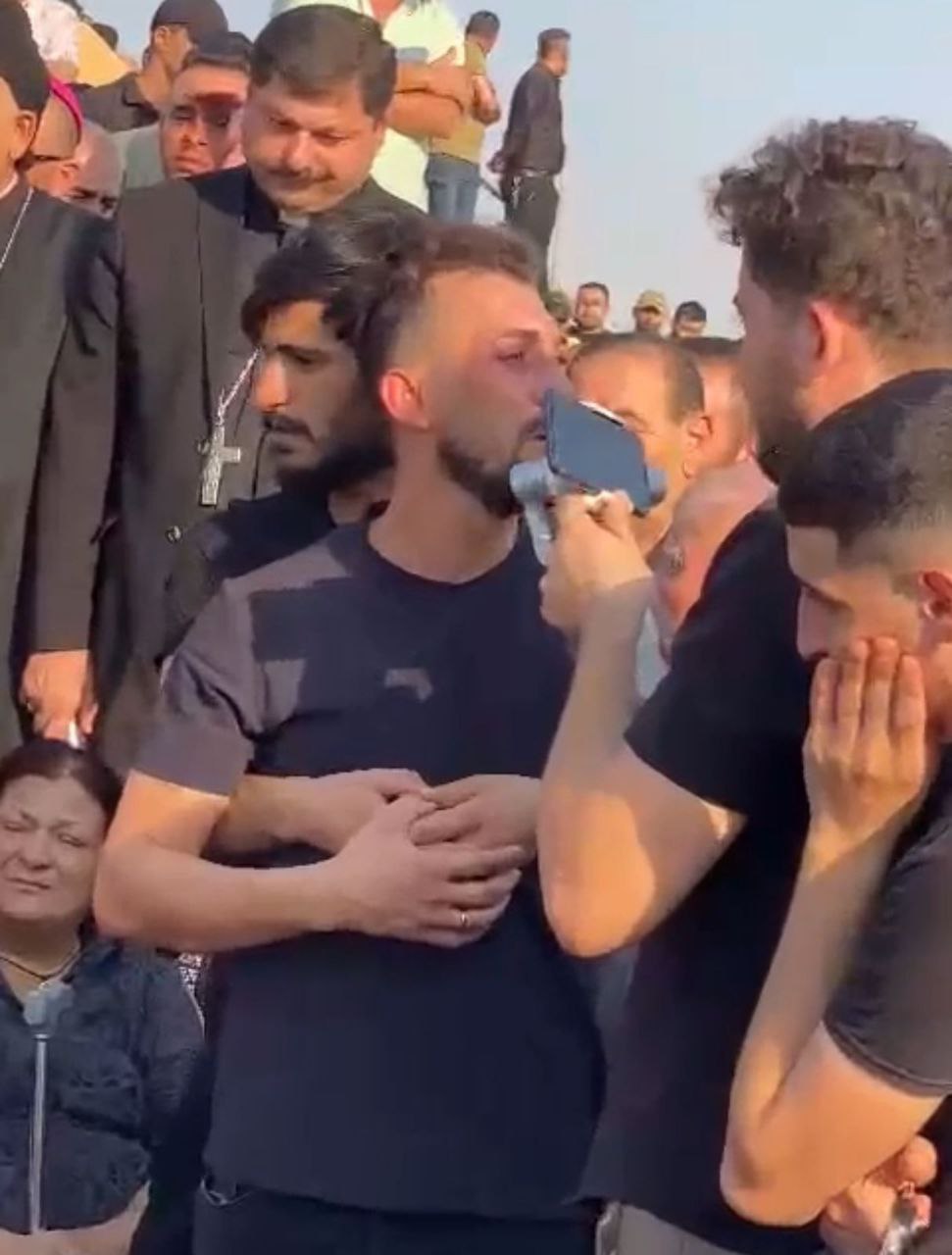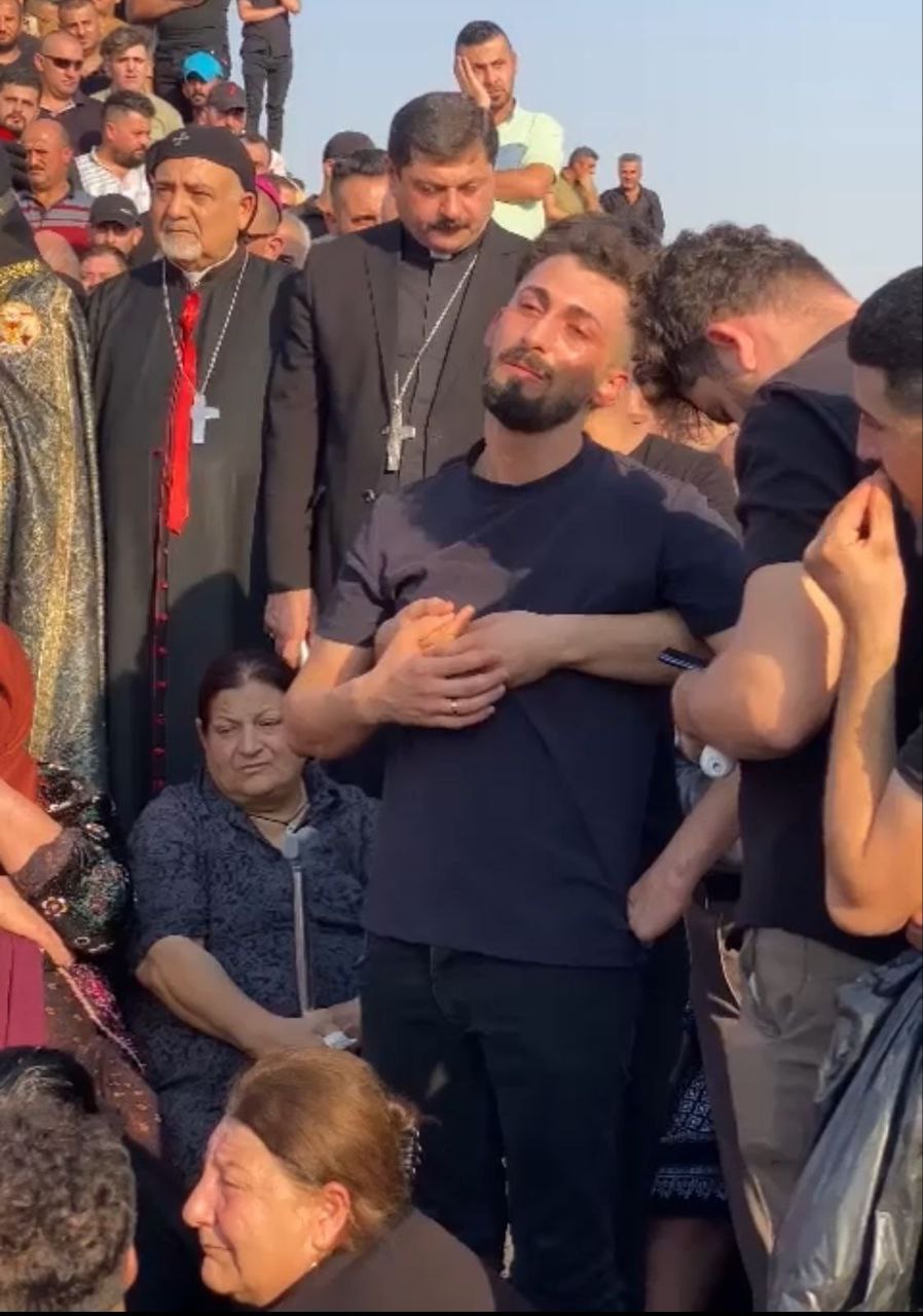 بثت قناة "الغدير" العراقية، صورا لعريس حريق قاعة الزفاف وهو في حالة انهيار تامة أثناء دفن جثامين الضحايا مثواها الأخير.