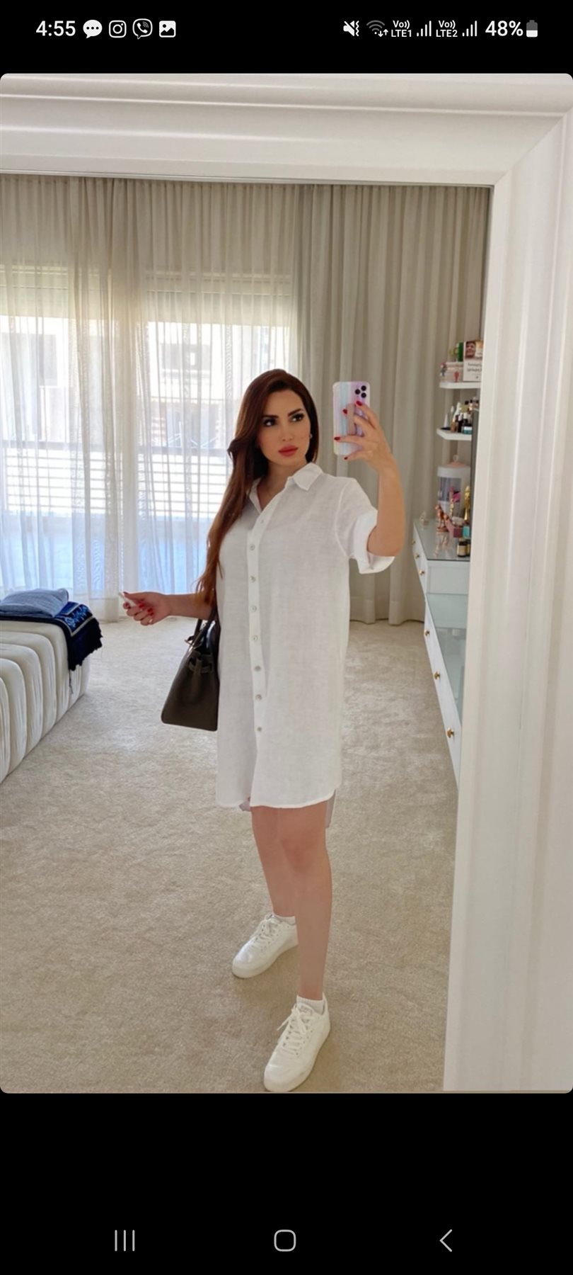 وتألقت نسرين طافش، مرتديه قميص طويل باللون الأبيض ذا تصميم ناعم ليكشف عن جمالها ورشاقتها.