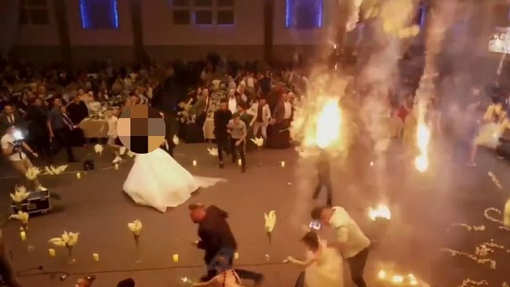 وقال أحد العاملين بالقاعة التي حرقت، إن السبب في الكارث يرجع لـ قيام بعض الحضور، بإشعال الألعاب النارية التي تسببت في الحريق.