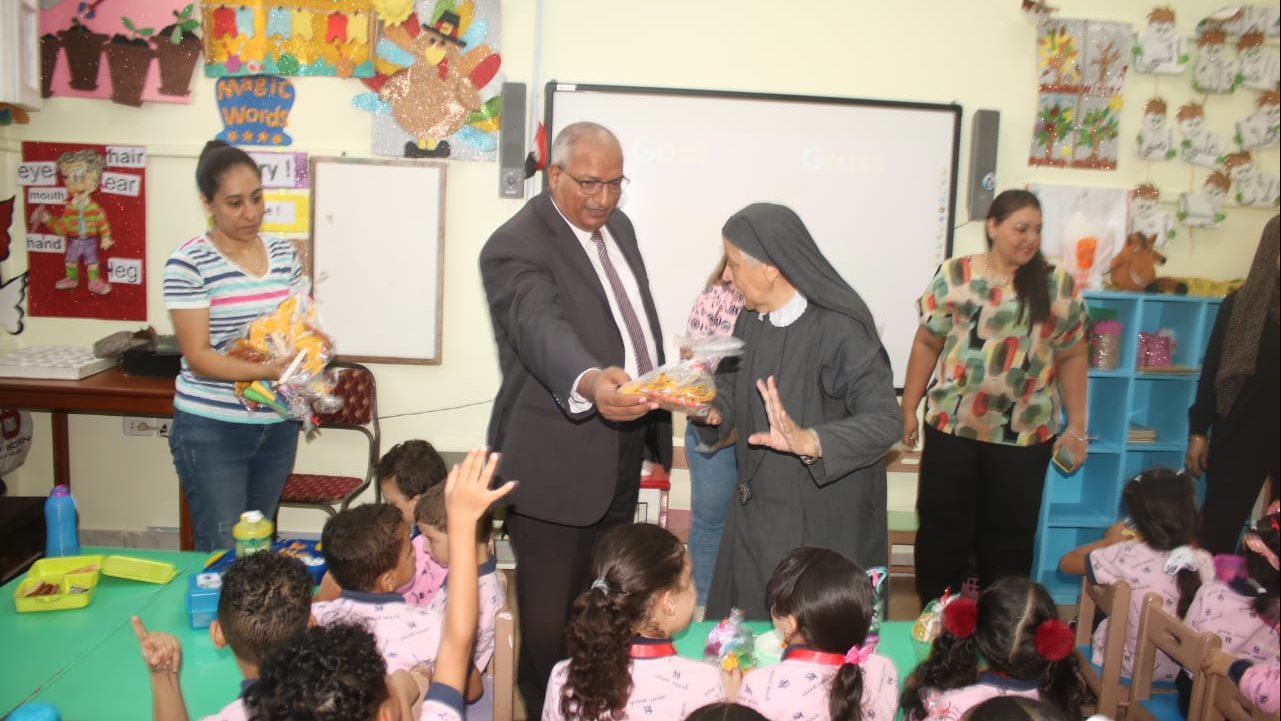 حيث تفقد وكيل الوزارة بعض المدارس التابعة لإدارة تعليم بني سويف، وشارك الطلاب فرحتهم باستقبال العام الدراسي الجديد والاحتفال بحلول الذكرى الـ50 لانتصارات أكتوبر المجيدة وتكريم أبناء وأسر الشهداء بهذه المناسبة ، وتم التأكيد على أهمية وضرورة تفعيل دور الأنشطة التربوية والاهتمام بطابور الصباح والنشيد الوطني والإلتزام بالإذاعة المدرسية واختيار البرامج التي تعمل على غرس قيم المواطنة وتنمية روح الولاء والانتماء للوطن والتوعية بالمشروعات القومية وحياة كريمة والتوعية بأخطار التغيرات المناخية وآثارها على البيئة ، وتخصيص فقرة يومية عن انتصارات أكتوبر المجيدة ، مع التنبيه على حضور مديري المدارس قبل بداية اليوم الدراسي والمرور على مباني المدرسة للتأكد من سلامتها ونظافتها قبل بدء الطابور وعدم مغادرة المدرسة إلا بعد التأكد من خروج جميع التلاميذ والطلاب والعاملين إلى جانب عدم مغادرة مسئول الأمن باب المدرسة والتأكد من شخصية الزائرين