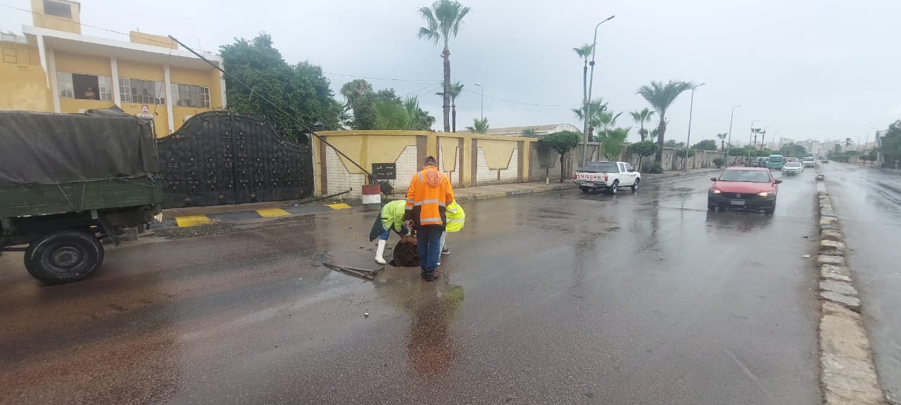 وأكد استمرار تمركز سيارات ومعدات الشركة في جميع أنحاء المحافظة للتعامل مع تجمعات مياه الأمطار فور حدوثها، واستمرار أعمال تطهير الشنايش والبيارات لرفع العبء عن الشنايش والمحطات أثناء الأمطار.