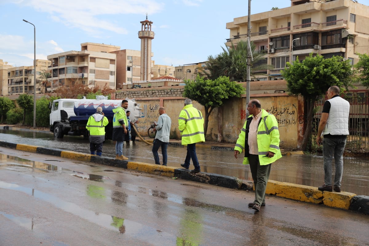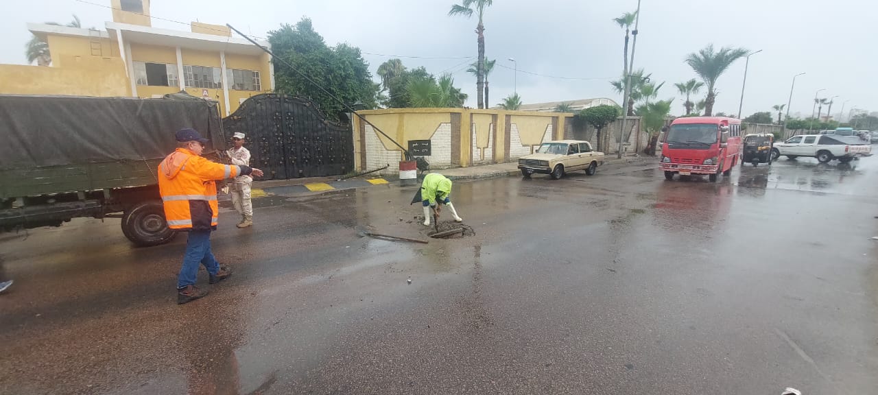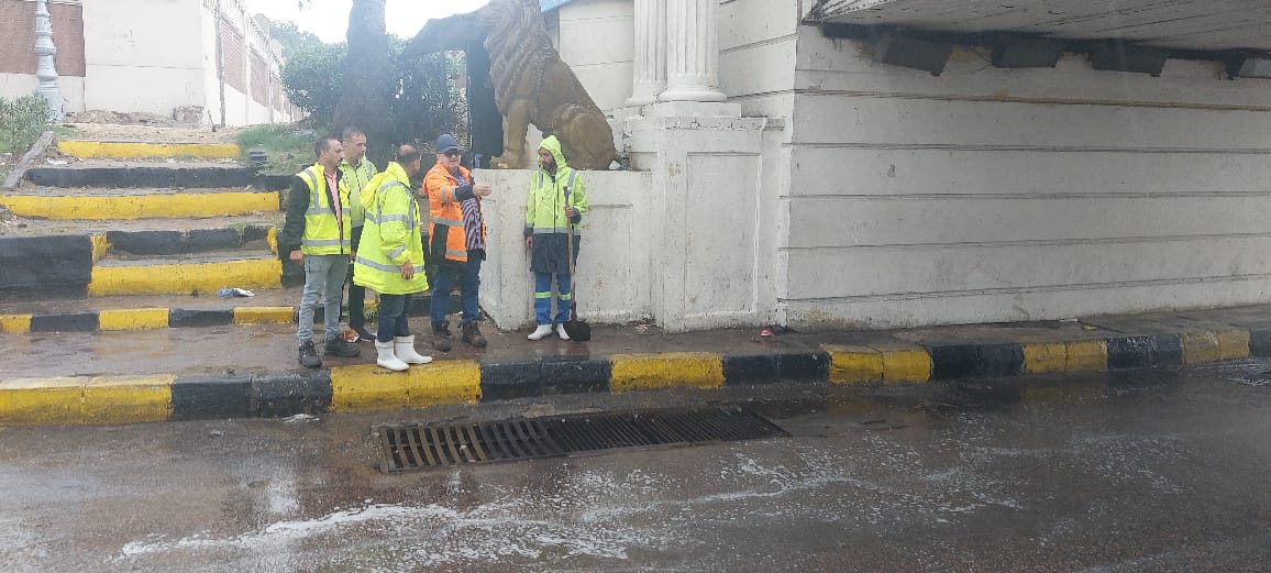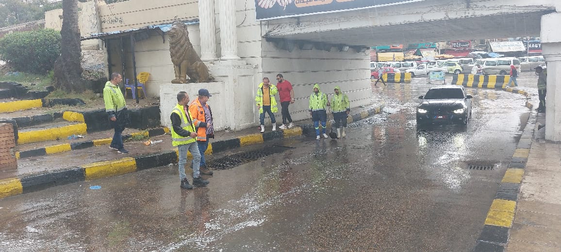 وقام اللواء محمود نافع بجولة تفقدية لأعمال سحب تجمعات المياه وتمركزات السيارات والمعدات بكوبري المندرة ومزلقان المعمورة وشارع طوسون والمعمورة السياحي وشارع بورسعيد بمنطقة المنتزه.