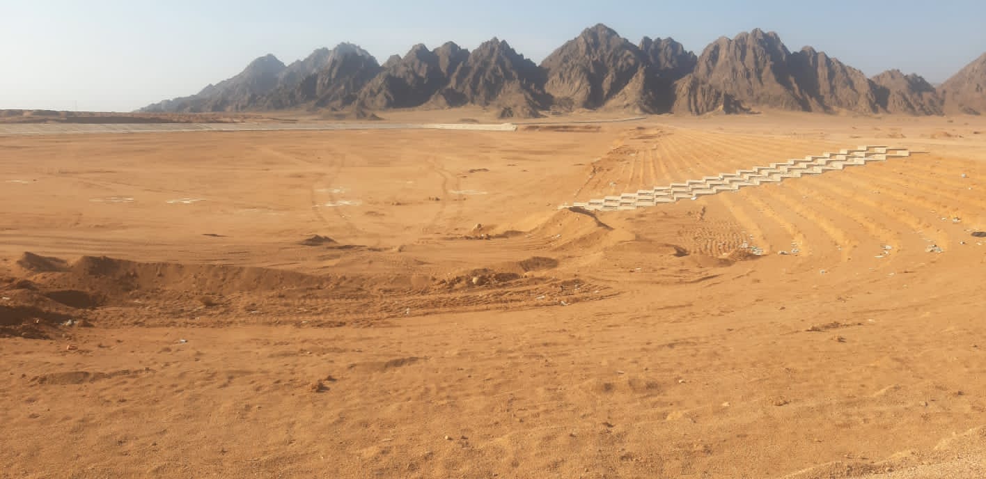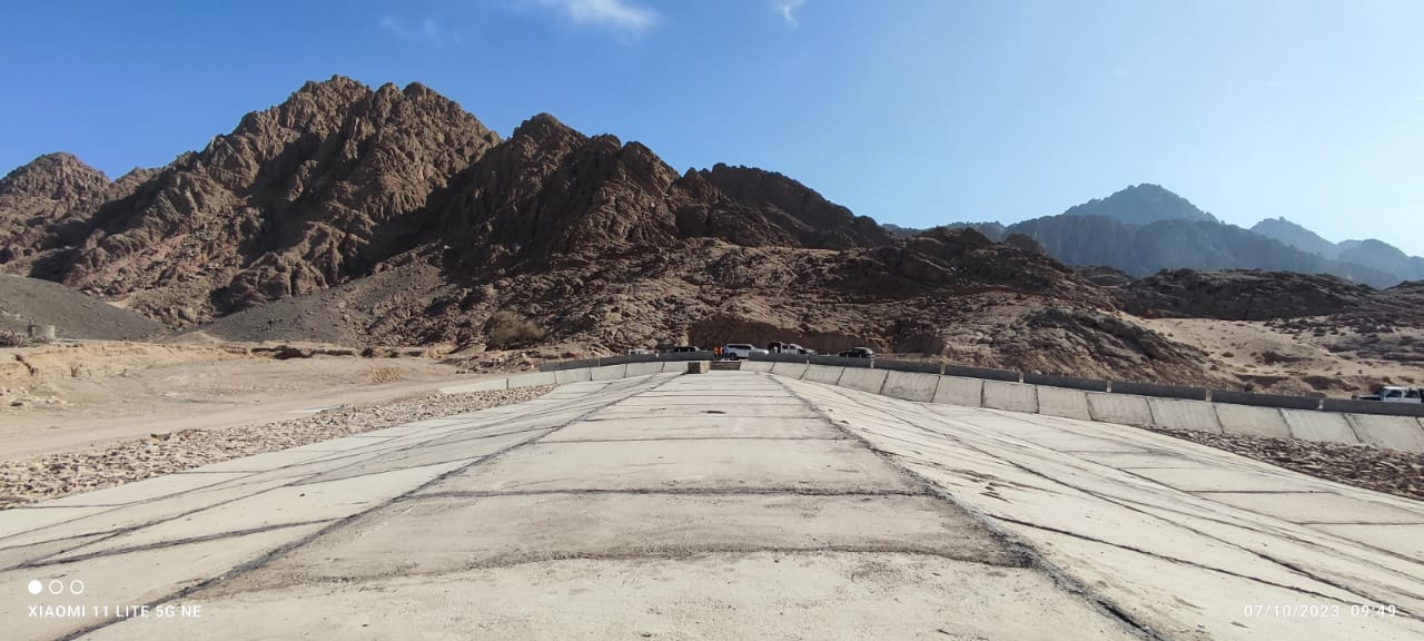 وأضاف أن أعمال الحماية تتألف من ١٥ بحيرة صناعية و ٩ سدود بطاقة تخزينية إجمالية ٦.٦٠ مليون متر مكعب، بالإضافة إلى ١٠ حواجز توجيه ، و ١٣ بربخ خرسانى عند التقاطعات مع الطرق الرئيسية ، و ١٣ قناة صناعية لتصريف مياه الأمطار باجمالى اطوال تناهز الـ ٦٠ كيلو متر .