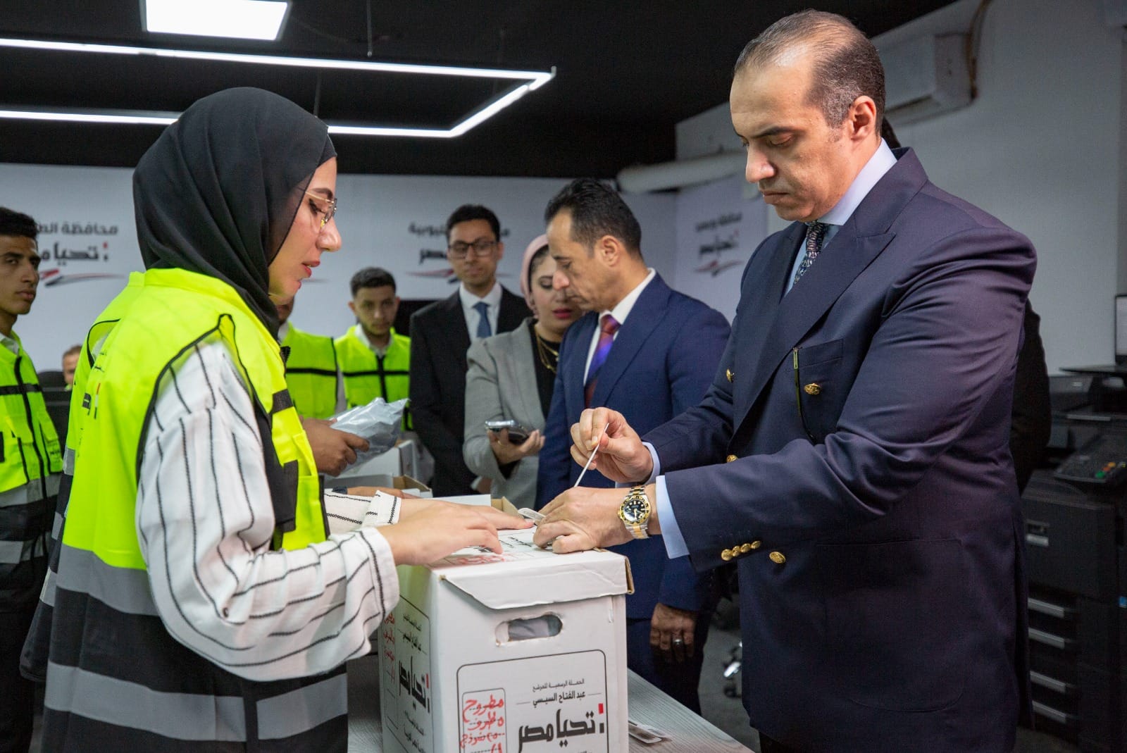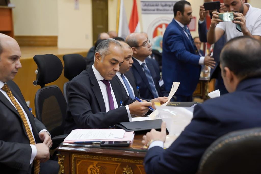 تقدم المستشار محمود فوزي، المستشار القانوني ورئيس الحملة الرسمية للمرشح الرئاسي عبد الفتاح السيسي، أوراق الترشح الخاصة بالمرشح الرئاسي، إلى الهيئة الوطنية للانتخابات، اليوم السبت 7 أكتوبر 2023.