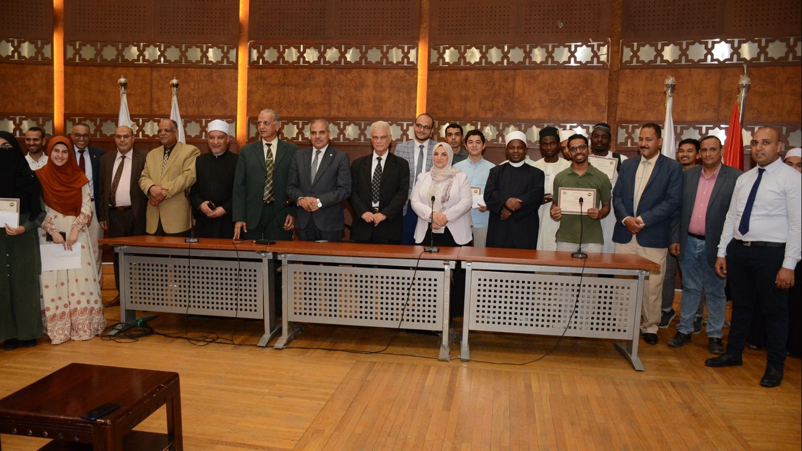 أقيم بمركز الشيخ زايد لتعليم اللغة العربية لغير الناطقين بها، حفل تكريم الفائزين في مسابقة «حفظ بردة الإمام البوصيري في مدح الرسول الكريم صلى الله عليه وسلم وإعرابها وفهم معانيها»، التي أقامتها المنظمة العالمية لخريجي الأزهر، ضمن احتفالاتها بمولد النبي الكريم هذا الشهر.