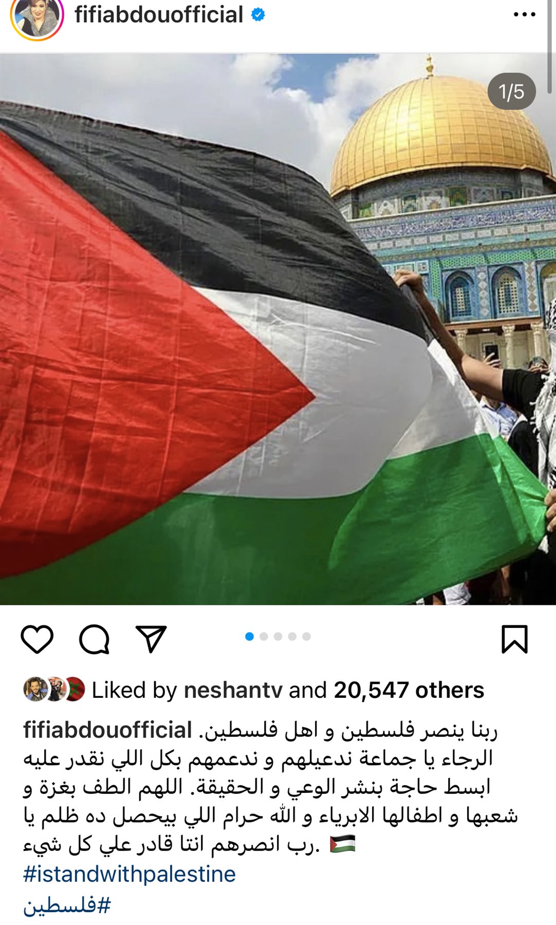 حرصت الفنانة فيفي عبده على دعم الشعب الفلسطيني في الحرب التي يخوضها ضد الاحتلال الإسرائيلي، وذلك عبر صفحتها على موقع الفيديوهات والصور الشهير “إنستجرام”.