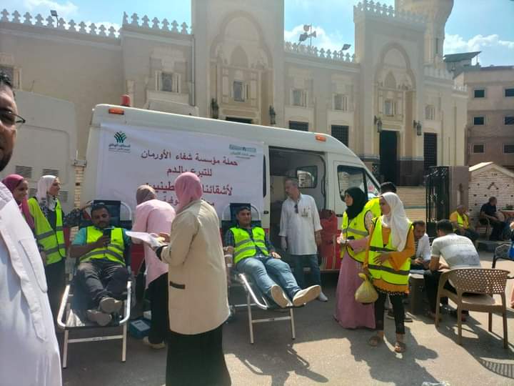 وتوافد العشرات من الأهالي للتبرع بالدم بالتعاون مع مؤسسات المجتمع المدني وجمعية صناع الحياة وبنك الدم.