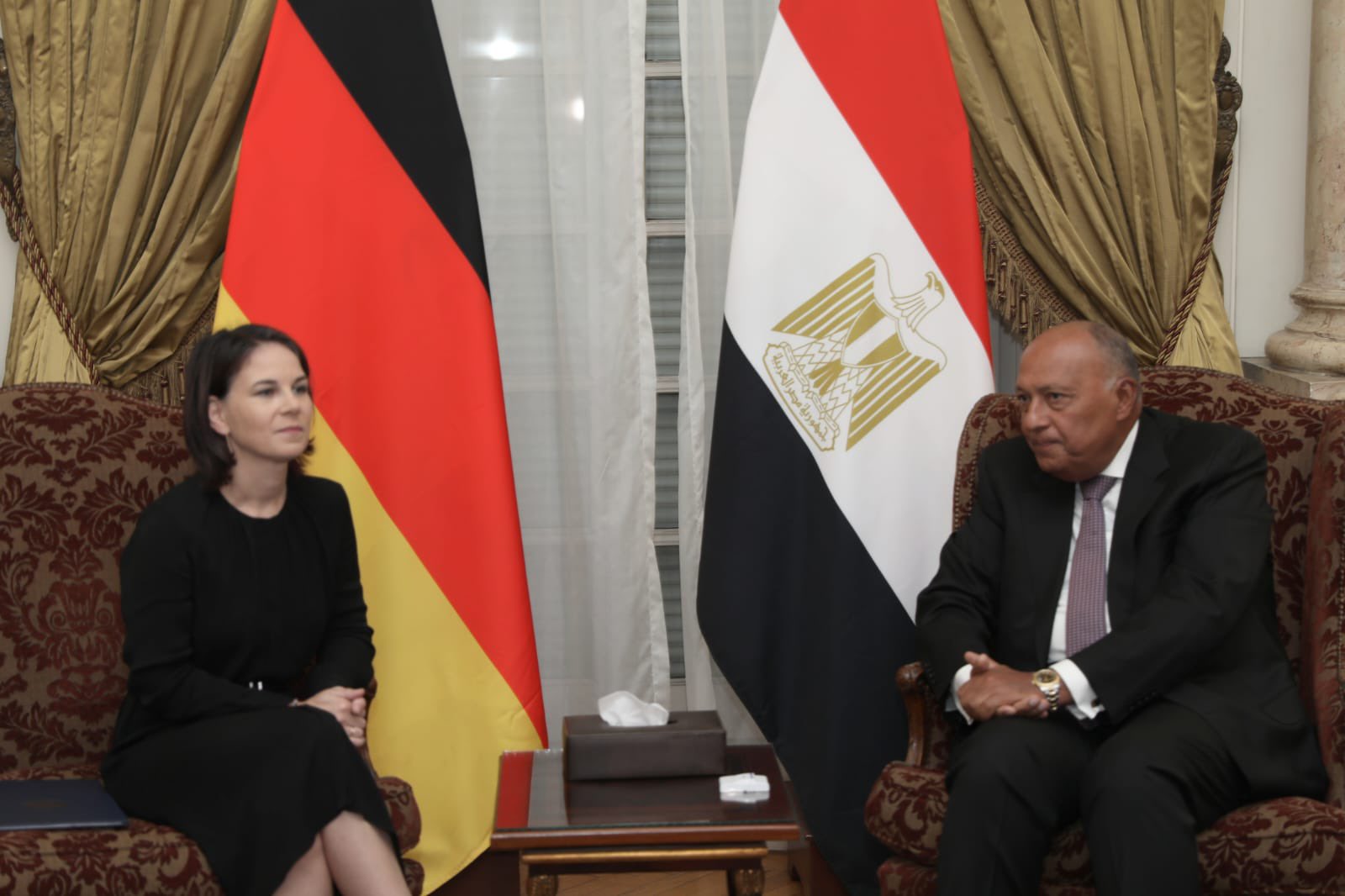 بحث وزير الخارجية سامح شكري، اليوم السبت 14 أكتوبر 2023 مع نظيرته الألمانية أنالينا بيربوك الوضع في قطاع غزة في ظل استمرار العدوان الإسرائيلي.