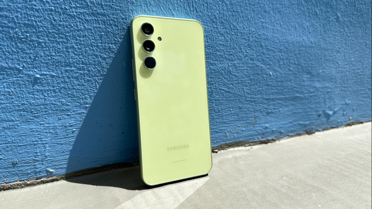 يعمل هاتف Galaxy A54 بواجهة المستخدم One UI 5.1 الخاصة بسامسونج على نظام نشغيل أندرويد 13، مع قارىء لبصمة الإصبع فى الجانب بزر التشغيل.