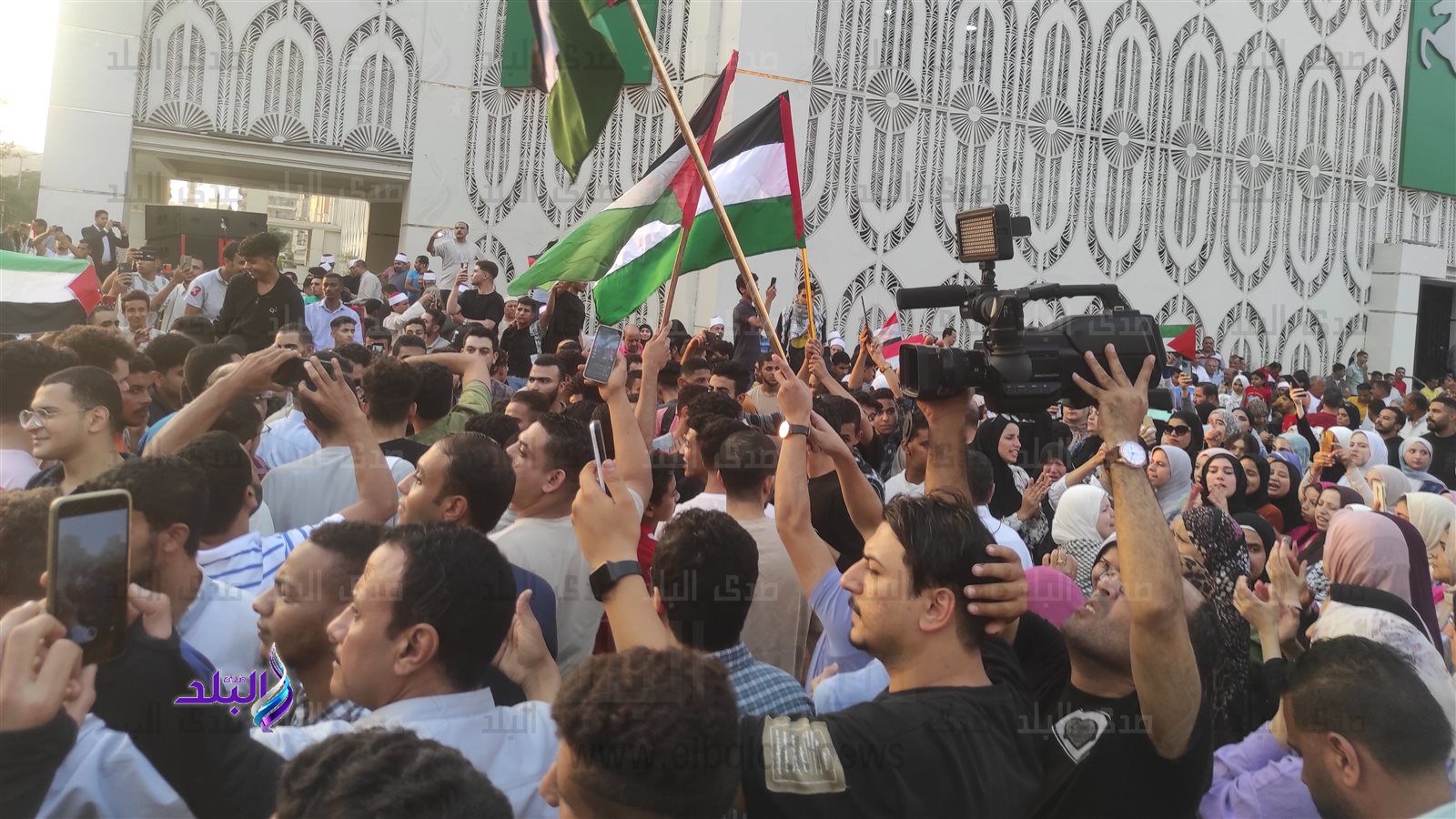 وأعلن المتظاهرون تأييدهم التام والكامل لموقف الرئيس السيسي تجاه القضية الفلسطينية مرددين الهتافات التي تؤكد موقف مصر رئيسا وحكومة وشعبا الرافض لتهجير سكان غزة قسريا من أراضيهم.