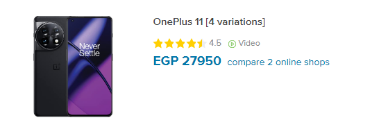 ويبدأ سعر OnePlus 11 في السوق المصري من حوالي 27 ألف و950 جنيها، علما بأن السعر يختلف حسب النسخة وأيضا حسب المتجر .