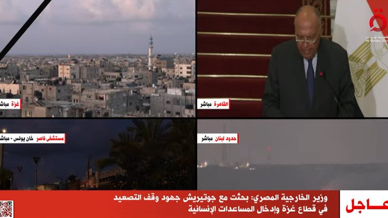 وتابع سامح شكري:" أوضحت للامين العام اقتناع مصر بأهمية وقف العمليات العسكرية وتأمين النفاذ الإنساني واحتواء الموقف واستعادة التهدئة في قطاع غزة.