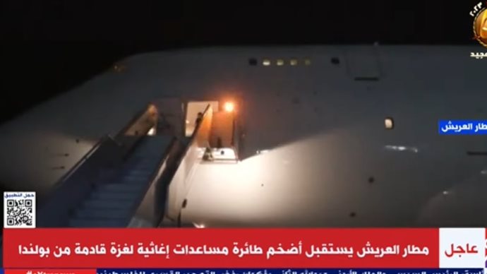 واستقبل مطار العريش، أضخم طائرة مساعدات إغاثية لدعم غزة قادمة من دولة بولندا.