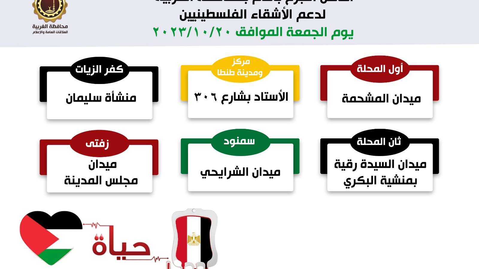 ونظمت أسرة طلاب من أجل مصر، حملة التبرع بالدم تضامناً مع الشعب الفلسطيني الشقيق، وحرصا من الجامعات على تقديم الدعم الفوري والإغاثة الإنسانية لدولة فلسطين امتدادا لدور الدولة المصرية بقيادة الرئيس عبدالفتاح السيسي رئيس الجمهورية في تقديم كافة أنواع الدعم والمساعدة لصالح أشقائنا الفلسطينيين.