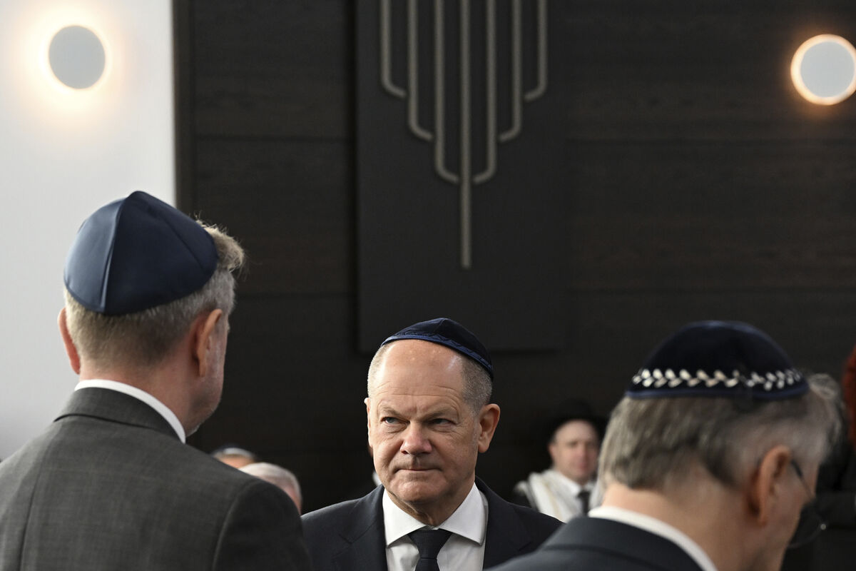 ارتدى المستشار الألماني، أولاف شولتس، اليوم الأحد، القلنسوة اليهودية في حفل افتتاح كنيس يهودي في مدينة ديساو الألمانية.