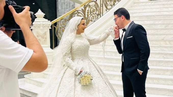 وأقيم حفل الزفاف أمس،بفندق Le Ceil، مدينة نصر بالقاهرة.
