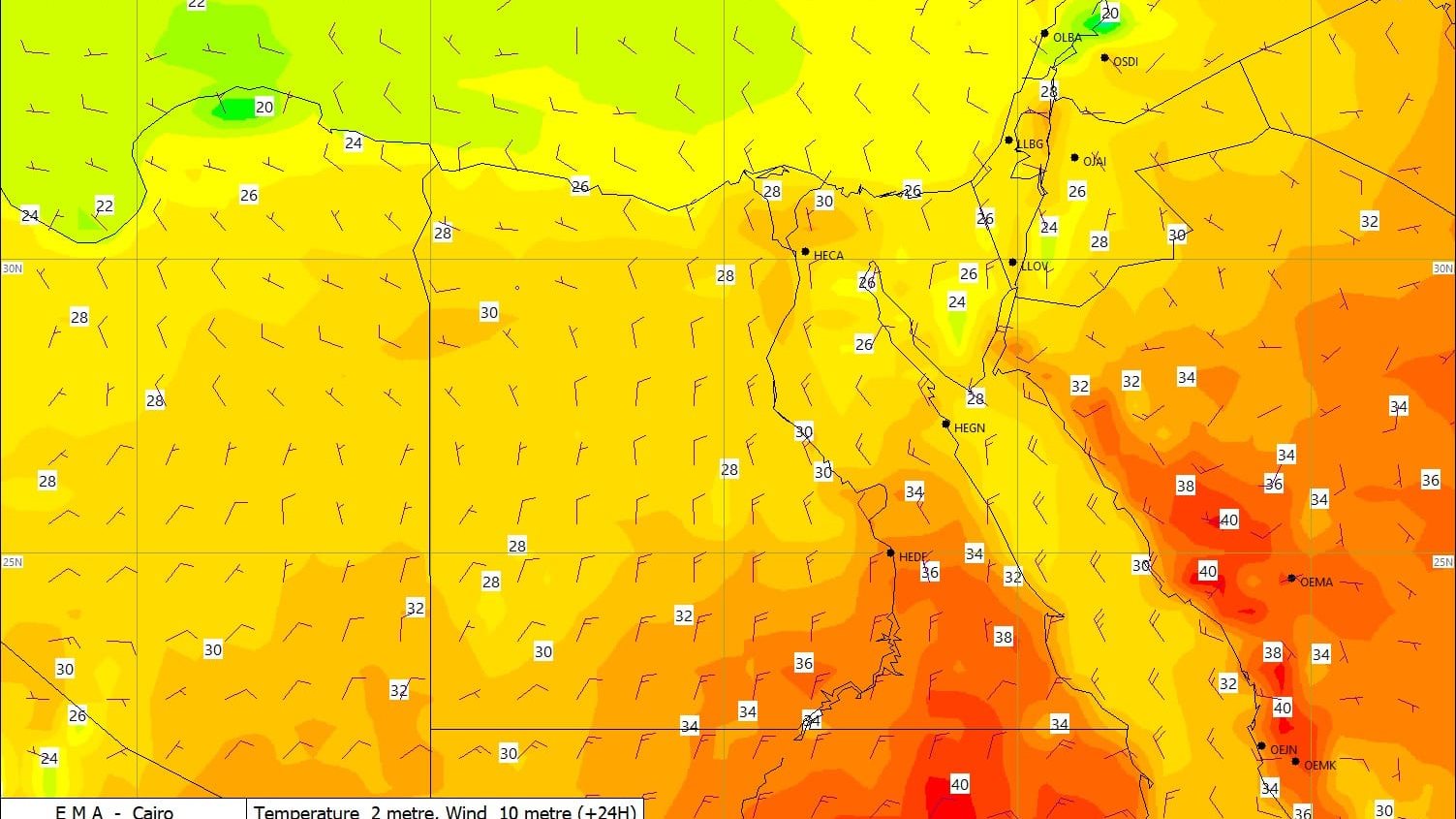 وفيما يلى بيان بدرجات الحرارة المتوقعة اليوم بحسب الأرصاد :