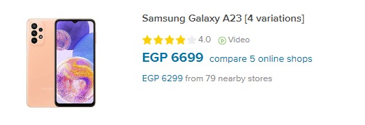 ويتوفر هاتف سامسونج Galaxy A23 في السوق المصري بسعر حوالي 6 آلاف و 699 جنيه، علما بأن السعر يختلف حسب النسخة وأيضا حسب المتجر.