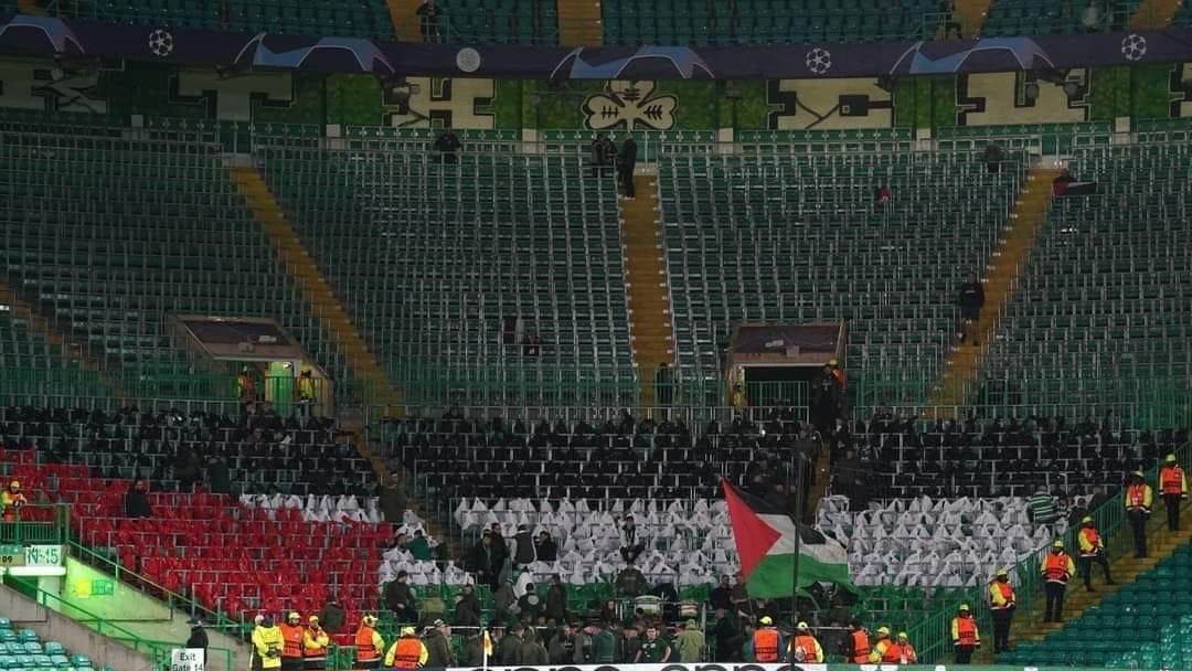 كشف أحمد حسن نجم منتخب مصر السابق عن جماهير نادي سيلتيك ترفع تيفو عبارة عن علم فلسطين.