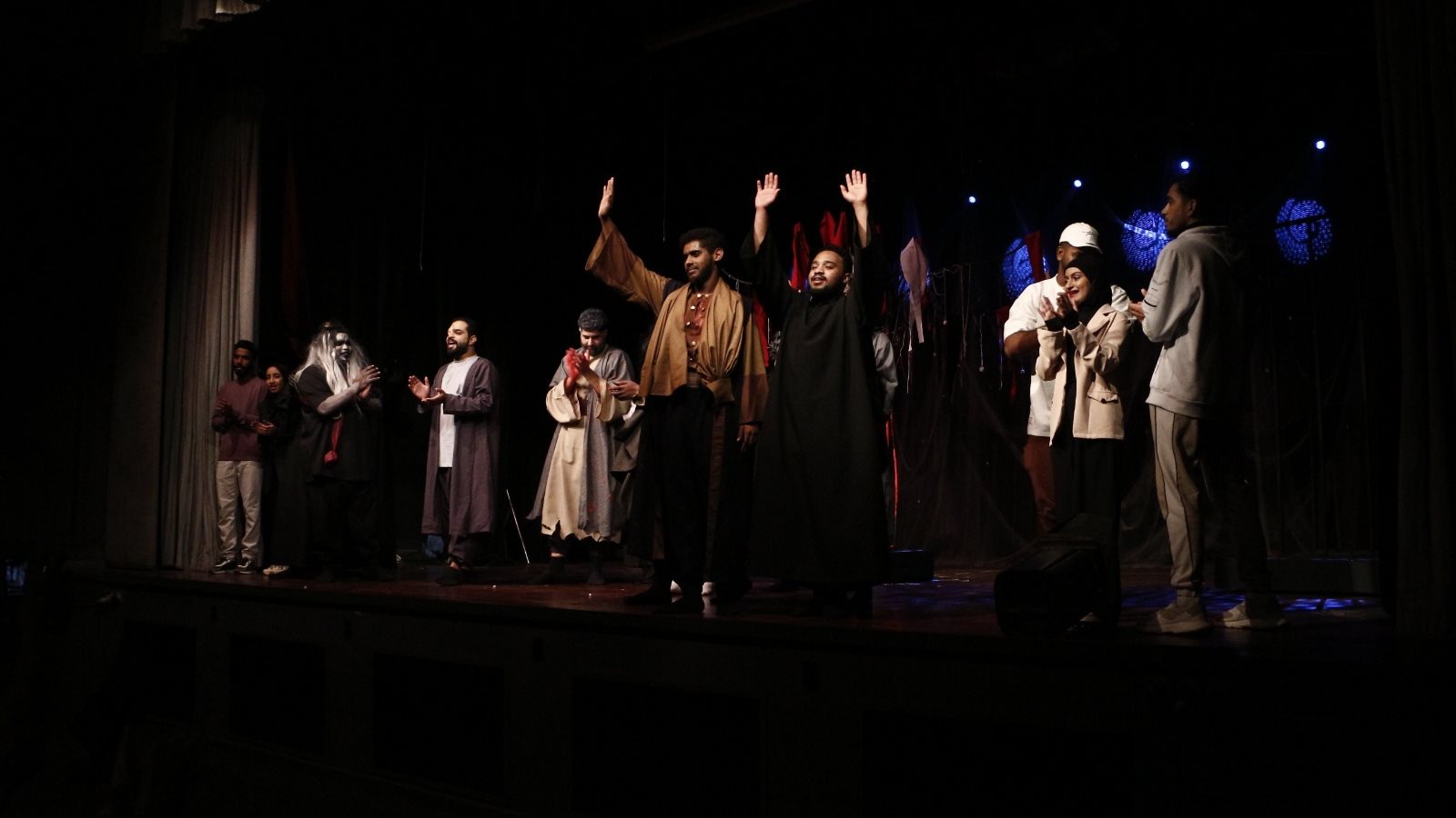 والعرض من بطولة: ماجد بن عيسى بن سعيد الرمضاني حسام بن محمد هبيس، عدنان بن جلال البلوشي، على بن حسين العجمي باسل بن سالم الشكيلي، نواف بن نايف الكلباني، وقصي بن فايز العشري، وماثر بن أحمد البراكة عمر بن صالح الوهيبي، ناصر بن يوسف المحاربي، حمدة بنت حمد الفزارية، آية بنت محفوظ الخميسية شروق بنت تميم الهنائية شوق بنت ضاحي نصيب طيف بنت سعيد بن راشد القحوصية، ندى بنت محمد الدوحانية ونورالهدى بنت خليفة الحضرمية.